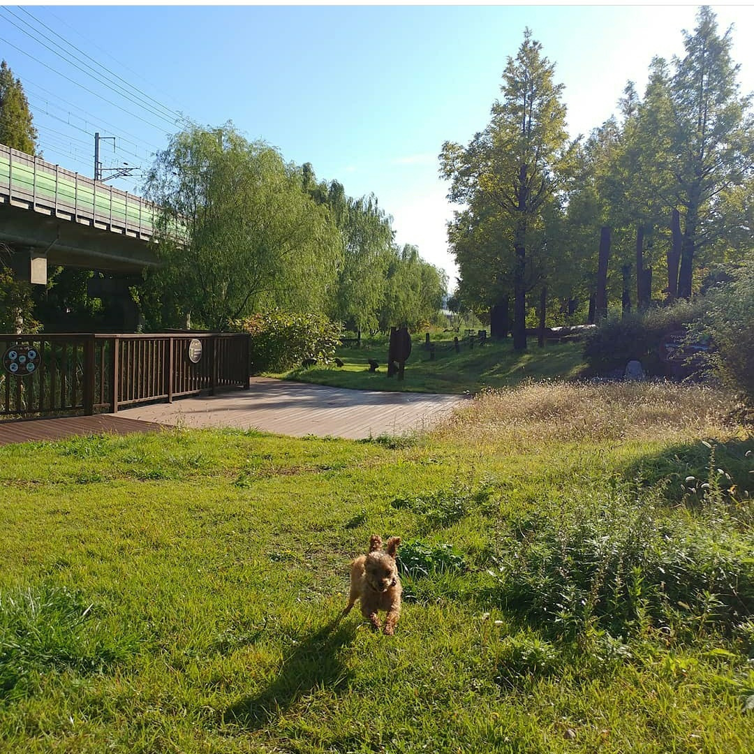 좋아 어쩔 줄 모르는 미미한 산책.