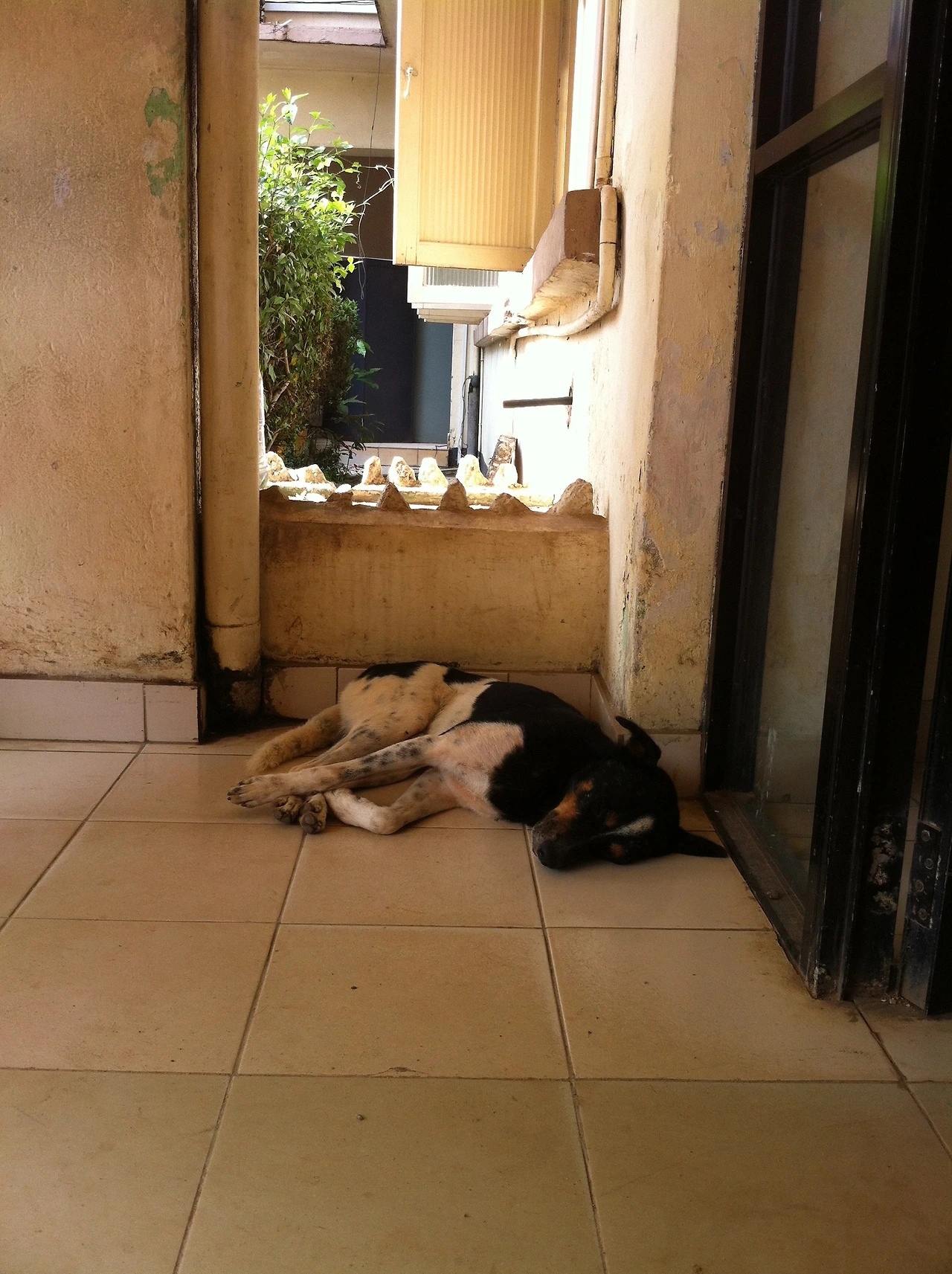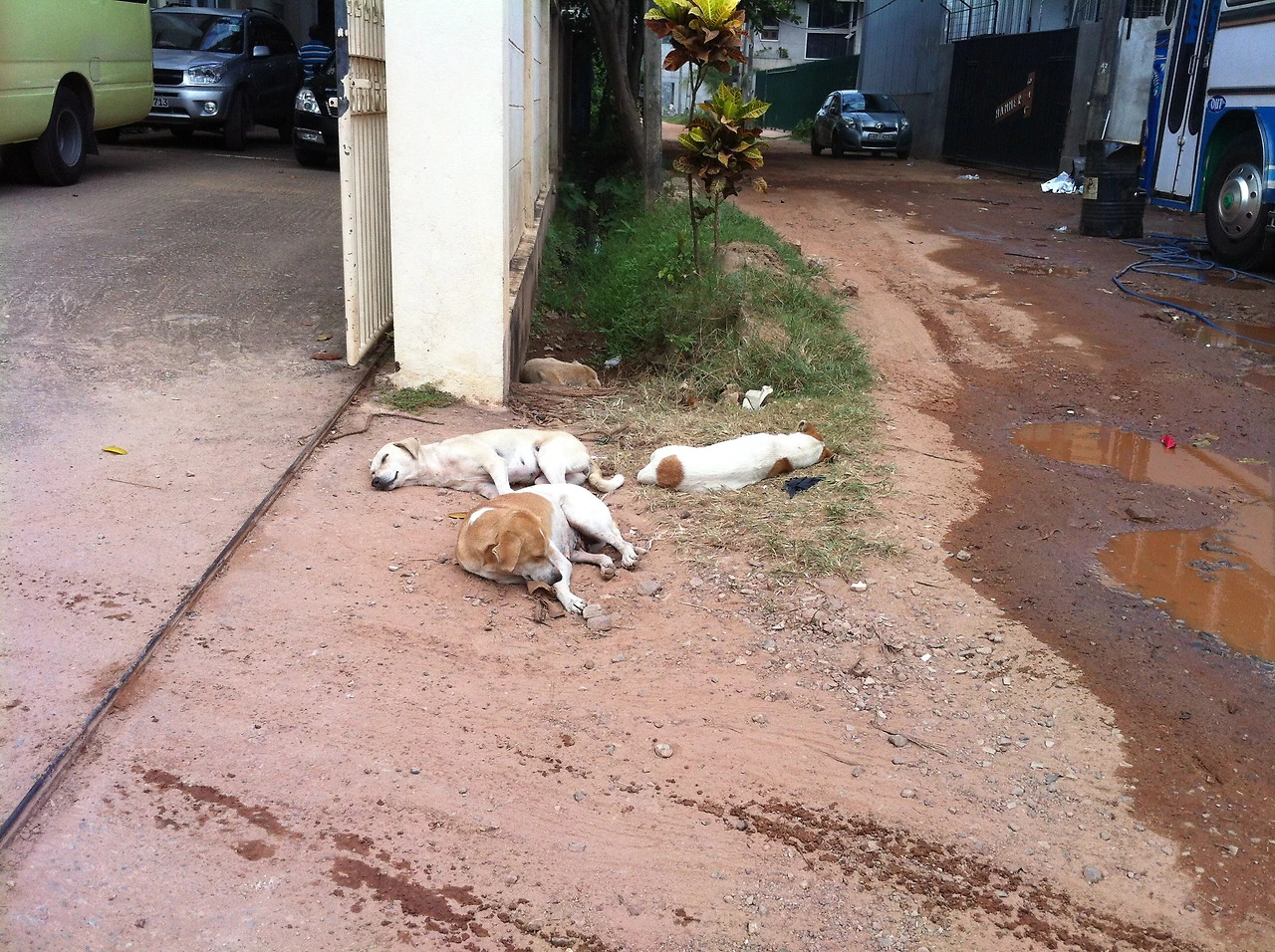 길거리 한복판에 늘어진 채로 자고 있는 스리랑카 개들.