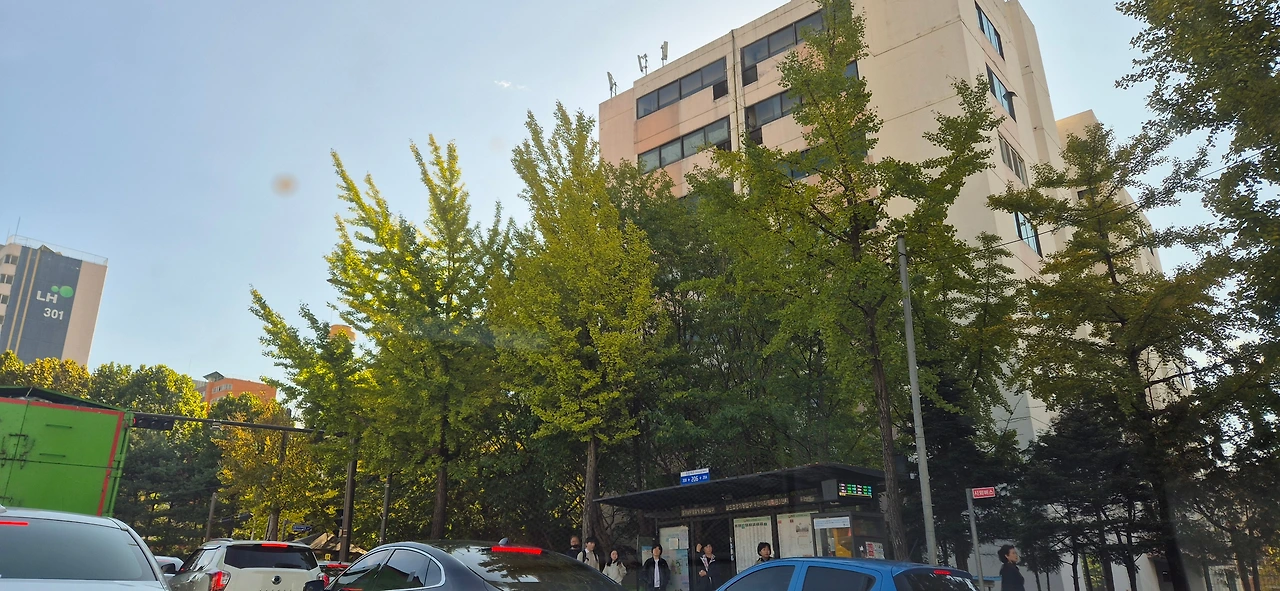 출근길에 흔히 볼 수 있는 은행나무가 노랗게 물들어야
