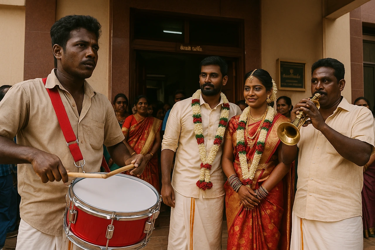 인도 결혼식이나 사원 행사는 늘 요란하다. 커다란 스피커로 노래를 틀고, 드럼 밴드를 불러 거리 콘서트처럼 축제를 벌이는 게 국룰이다. 그 길에 사는 누구도 그걸 막을 수 없고, 억지로라도 즐겨야만 한다. 중요한 시험 보기 전 날이면 우리는 그 소리 안 들리는 집에 가서 공부를 할때도 있었다. 우리 학교 옆 결혼식도 결국 콘서트를 열어버렸다...