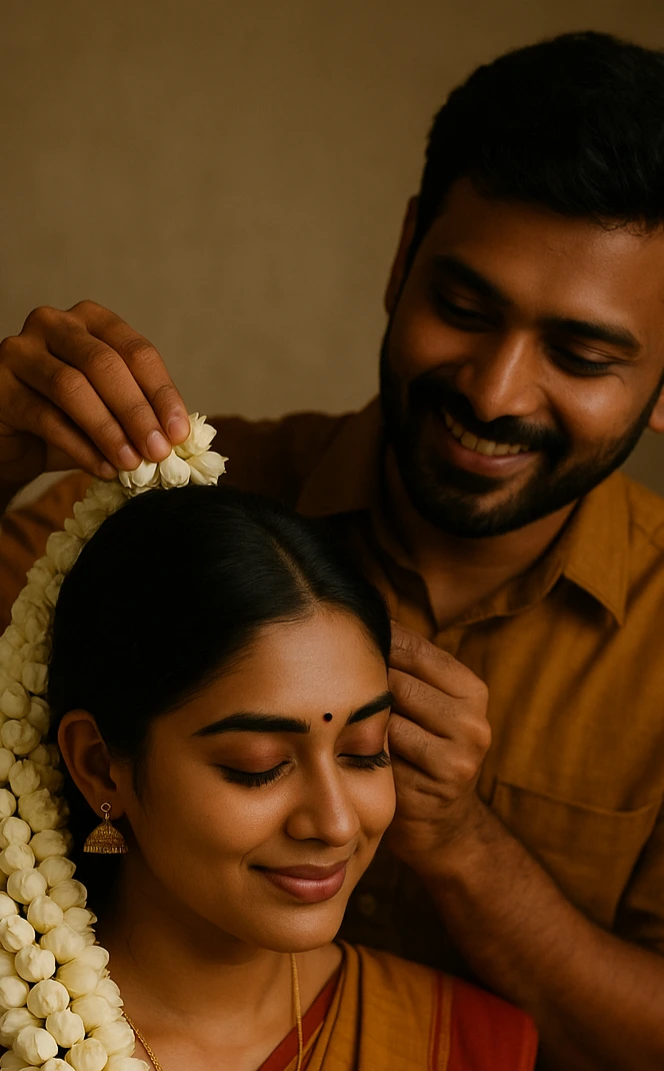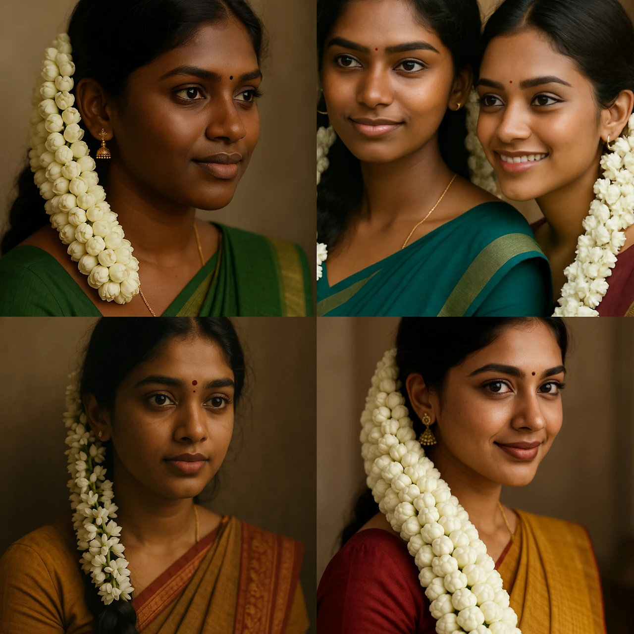 타밀나두 여성들이 머리에 꽃을 꽂는 문화가 있다. 시인들은 “꽃이 여성의 머리 위에 얹히면 그 꽃마저 천국으로 간다”, “오빠 널 보기 위해 자스민을 맨날 하다 보니 금방 시들어버린다, 언제 오는 거야” 같은 시를 수도 없이 지었다. 그렇게 머리 위에 올리는 꽃들 중에는 자스민, 야생 자스민, 장미 등이 있지만, 그중에서도 자스민을 꽂았을 때 가장 아름답다고 믿는다. 동글동글한 하얀 자스민 꽃송이들이 모여 얼굴 옆으로 살짝 드러날 때, 여성이 가장 빛나 보인다고 여겨진다.