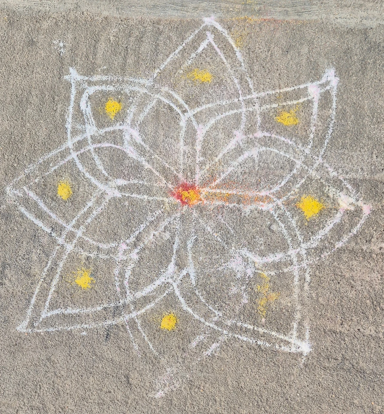 인도의 집 앞을 보면 분필가루로 그린 전통 그림들을 자주 볼 수 있다. 사람들은 매일 아침과 저녁, 하루의 시작과 끝을 맞이하는 의미로 이 그림을 그린다. 지역마다 그림의 종류와 스타일도 다양하다. 타밀나두에서는 점을 찍어 기하학적인 무늬로 이어가는 콜람을 많이 그리고, 북인도의 랑골리(Rangoli)도 널리 알려져 있다. 이런 그림을 그리고 촛불을 함께 켜 두면 좋은 운이 들어온다고 믿는 사람들도 있다.