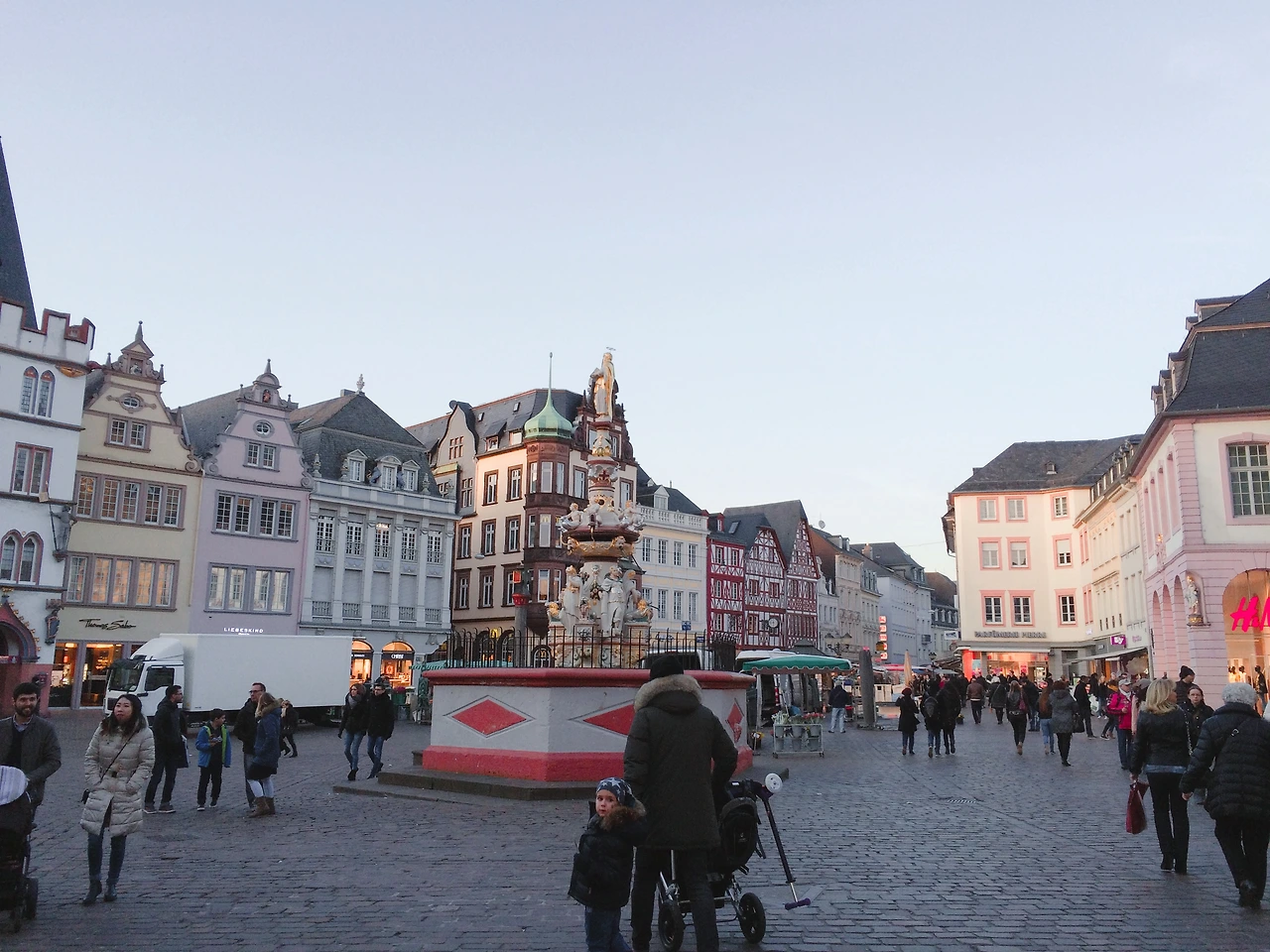 트리어 광장에는 독일 건물로 인해 전형적인 독일 분위기를 느낄 수 있다. 건물뿐만 아니라 백화점, DM(독일 드럭스토어), 프리첼 파는 가게 등 독일을 느낄 수 있는 상점들이 즐비했다. 낭시에서처럼 세련된 패션에 관련된 상점들은 드물었다. 건물들은 파스텔 색이나 선명한 다홍색 혹은 보라색 같은 색으로 칠해져 있었다. 알록달록한 건물들은 프랑스의 회색 빛 건물과 상반되는 분위기를 조성한다. 건물들이 프랑스보다는 대체적으로 아기자기한 편이다. 역사를 공부하면 더 재미있는 사실을 발견할 수 있을 듯싶다.