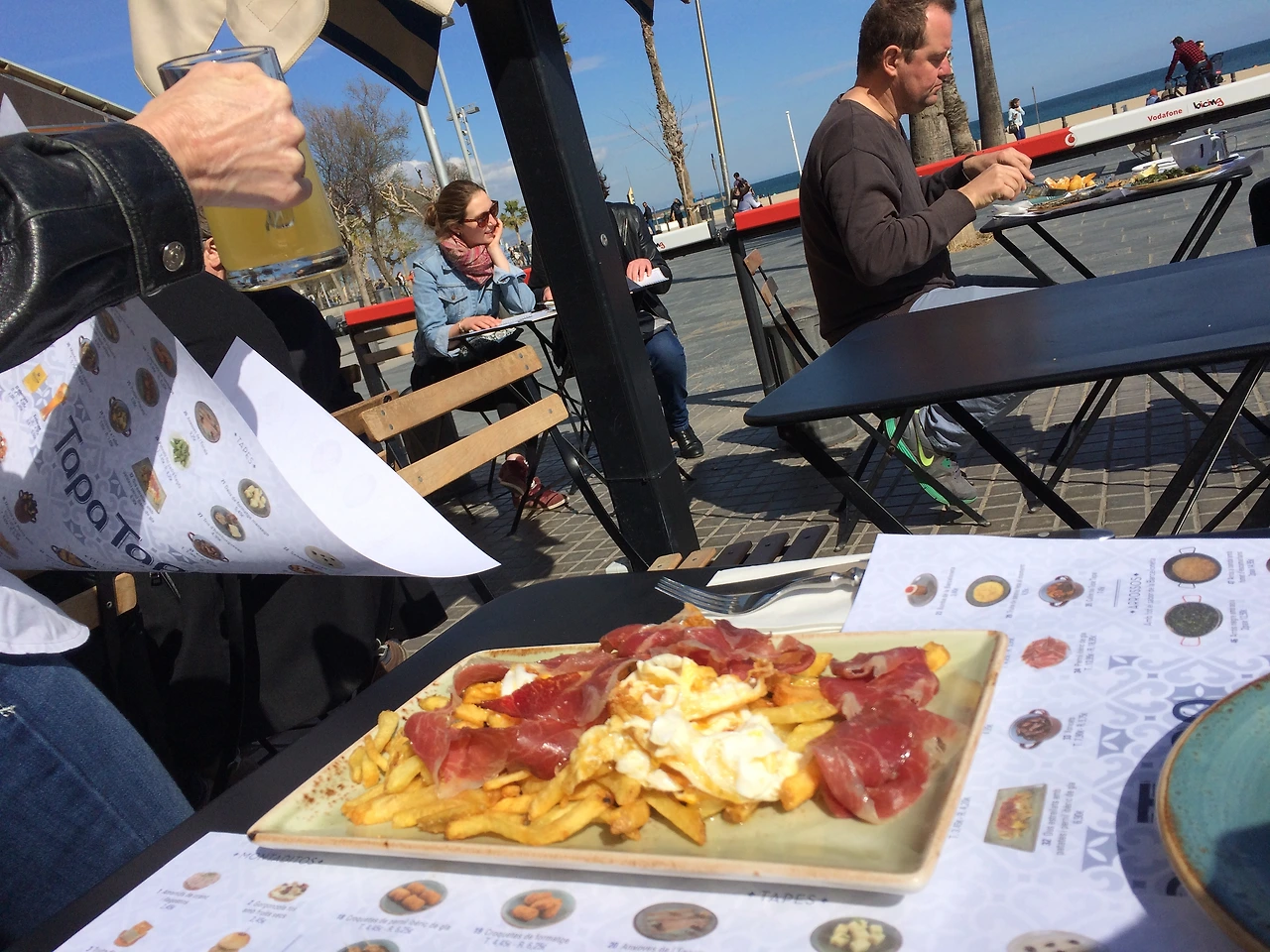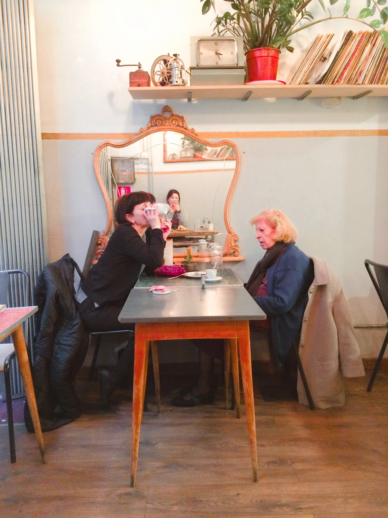 D와 만나자마자 서로 무슨 할 말이 그렇게 많았는지 빠르게 말하며 배고픈 배를 채우기 위해 빠르게 걸었다. 해변가에 위치한 호스텔에서 가까운 식당에 들어갔다. 햇살을 즐기기에 충분한 날씨. 아니지, 이런 날씨에 실내에 들어가는 건 복권에 당첨되고도 찾지 않는 거랑 다를 바 없다 생각하여 테라스에 앉았다. 의외로 바람은 매우 차가웠지만. 우리는 감자튀김과 먹물 빠에야를 주문했는데 15분 걸린다던 먹물 빠에야는 1시간이 지나서야 나왔다. 괜찮다, 바르셀로나니까! 우리는 고딕 지구를 거쳐 람블라스 거리를 걸었고 바르셀로나 성당을 구경했다. 밤샘 버스로 지친 나는 새벽 비행기로 지친 D에게 카페에 가자고 했다. 걷다가 발견한 아기자기한 카페에 들어갔다. 당근 케이크를 좋아하는 D는 당근 케이크를 주문한다. 나는 초콜릿 케이크가 먹고 싶었으나 신기하게도 맥주가 들어가 있다고 하여서 맥주를 싫어하는 나는 평상시에는 고르지 않는 레몬 타르트를 주문한다. 커피도 2유로도 안 되는 가격이라고는 믿을 수 없이 아주 맛있었다. 4개의 테이블이 놓인 조그마한 카페에는 사람들이 끊이지 않고 들어왔다 머물렀다 나갔다. 아마 케이크와 커피 맛이 좋아서겠지. 게다가 주인은 친절하고, 무엇보다도 잘 생겼다. 우리는 다시 호스텔 근처로 돌아와 사람들이 많은 식당으로 가서 와인을 한 병 마시고 뜨겁다는 바르셀로나를 온몸으로 즐겼다.