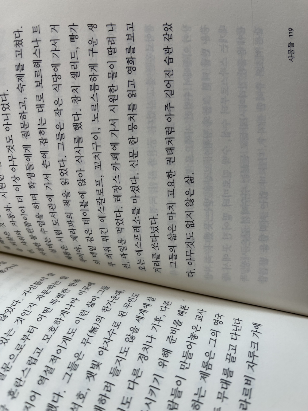 page119. 그들의 삶은 마치 고용한 권태처럼 아주 길어진 습관 같았다. 아무것도 없지 않은 삶.