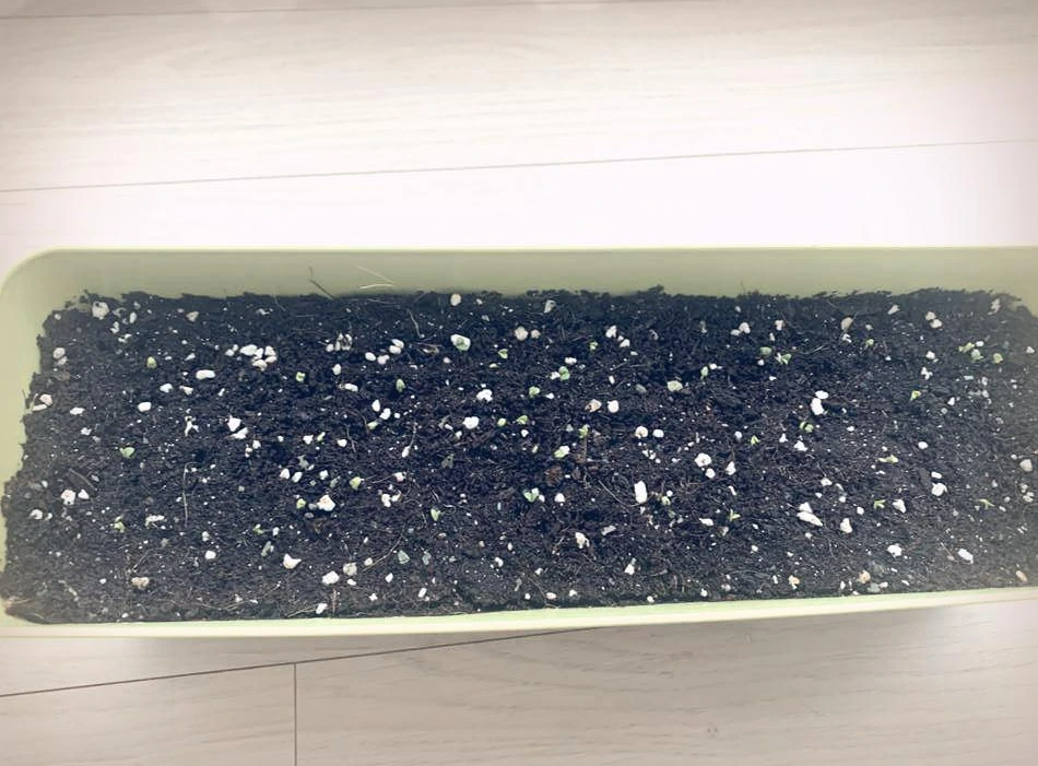 남편은 내가 조금씩 걷게되자 다시 배양토를 비롯해서 이번엔 조금 더 탄탄한 흙들을 종류별로 구입해왔다. 그리고 거실 한 바닥에 신문지를 가득 깔고, 오이소와 방울이를 심었던 키트 화분에 씨앗들을 뿌렸다. 그리고 흠뻑 분무기로 물을 뿌려주었다. 그러자 정말 신기하게도 씨앗을 감싸는 물막이 생기기 시작했다.