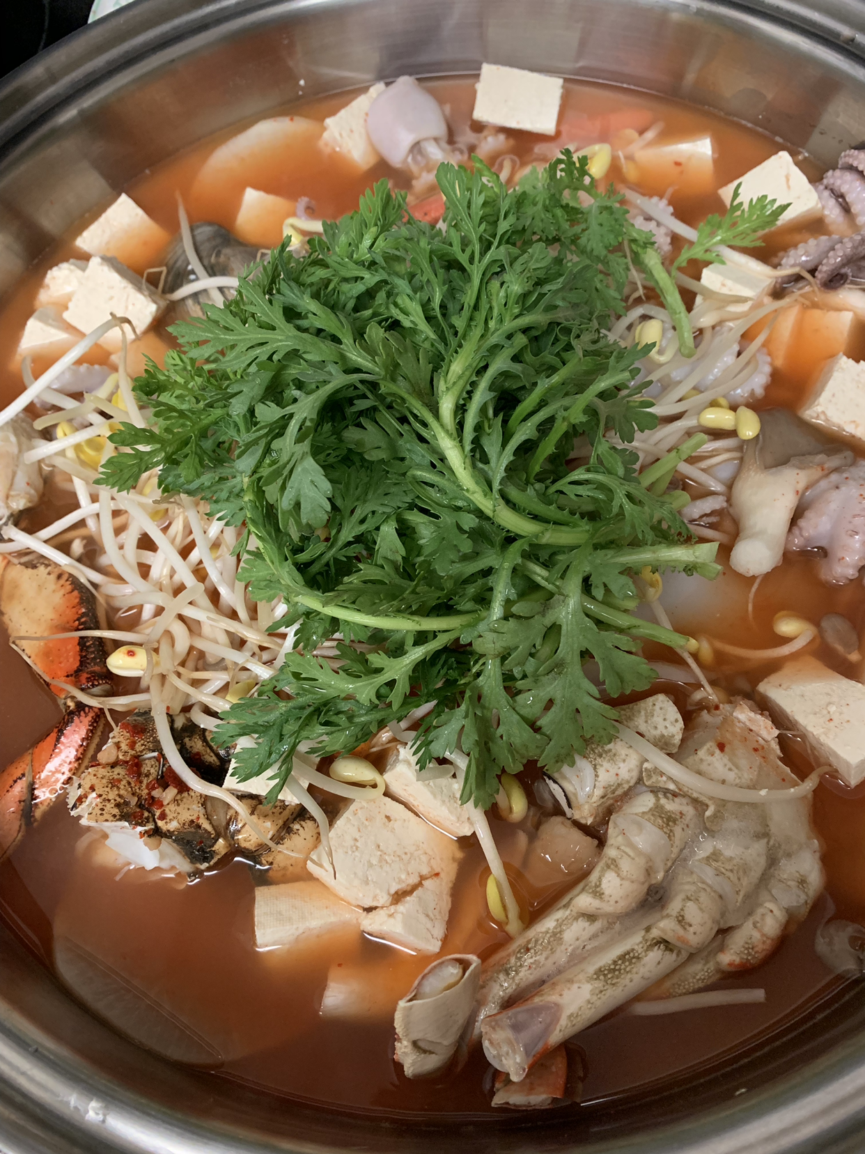 해물탕 양념은 간단합니다. 고춧가루, 맛술, 젓갈, 마늘이 다입니다. 나중에 끓으면 된장 한 스푼만 풀어 넣거든요. 맛을 보기 전에는 에이~이게 맛이 난다고? 의심이 갔는데 간을 보며 놀라고 말았습니다.