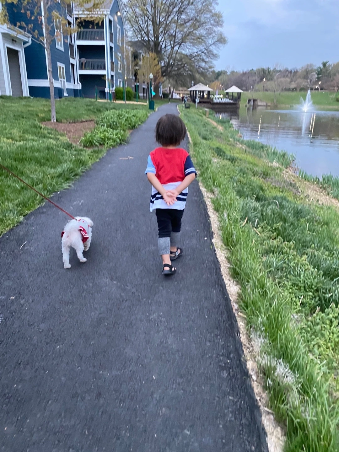 어느 날 산책하다 본 아이의 뒷짐 지고 걷기. 대체 어디서 배운 걸까 한참을 의아하게 쳐다봅니다.