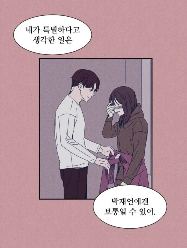 웹툰 <알고있지만>, 유나비는 애정결핍이 심해서 어떤 행동이든 의미부여가 심하다.
