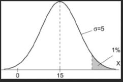 위의 우산 모양의 그래프는 분포를 표현하는 그래프인데, 인터넷에 돌아다니는 것을 가져왔다. 이전 글에서 Spec에 대한 이야기를 했었는데, 위의 그림은 그것과도 연관이 있다. 간단하게 설명하면 평균은 15이며, 표준 편차 5인 제품의 1% 불량이 발생하는 Spec은 어떻게 되는지를 보여주는 그림이다.