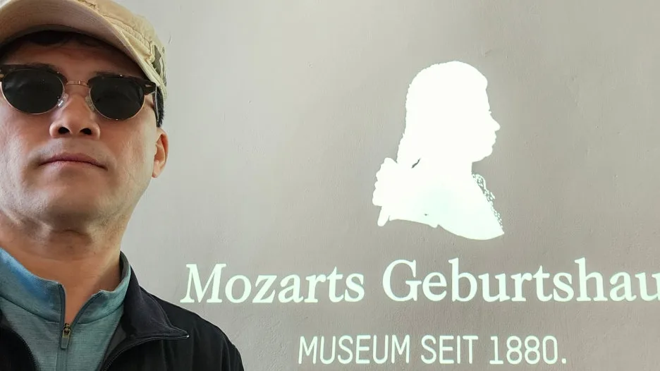 유람선에서 내리자마자 다시 모짜르트 생가 박물관으로 서둘러 뛰어갔다. 오후 5시가 넘은 시각이라 박물관 관람 시간이 얼마 남지 않았기 때문이었다. 5시가 훌쩍 넘은 시각, 안타깝게도 박물관 입장은 마감이었다. 아쉬워도 어쩌겠는가. 1층 입구 계단 앞에서 기념사진을 촬영하는 것으로 아쉬움을 달랬다.