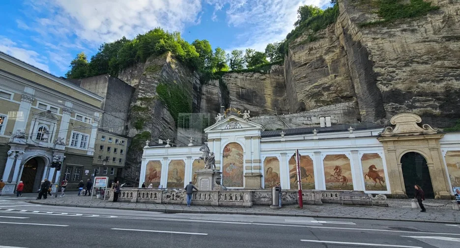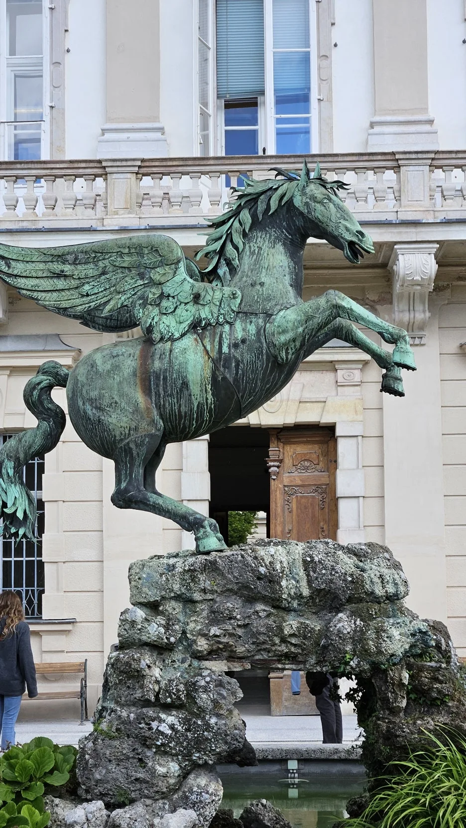 사람들이 우측으로 많이 몰리는 것 같아 눈치껏 따라가 봤다. 아니나 다를까, 그곳에는 그 유명한 '페가수스 분수대'가 있는 게 아닌가! 영화 '사운드 오브 뮤직'에서 마리아 수녀와 아이들이 소풍을 나와 '도레미 송'을 부르며 걸어갔던 분수대로 유명한 곳이다. 앞발을 높이 든 날개 달린 페가수스는 마치 살아 있는 것처럼 금방이라도 나에게 뛰어 내려올 것만 같았다.