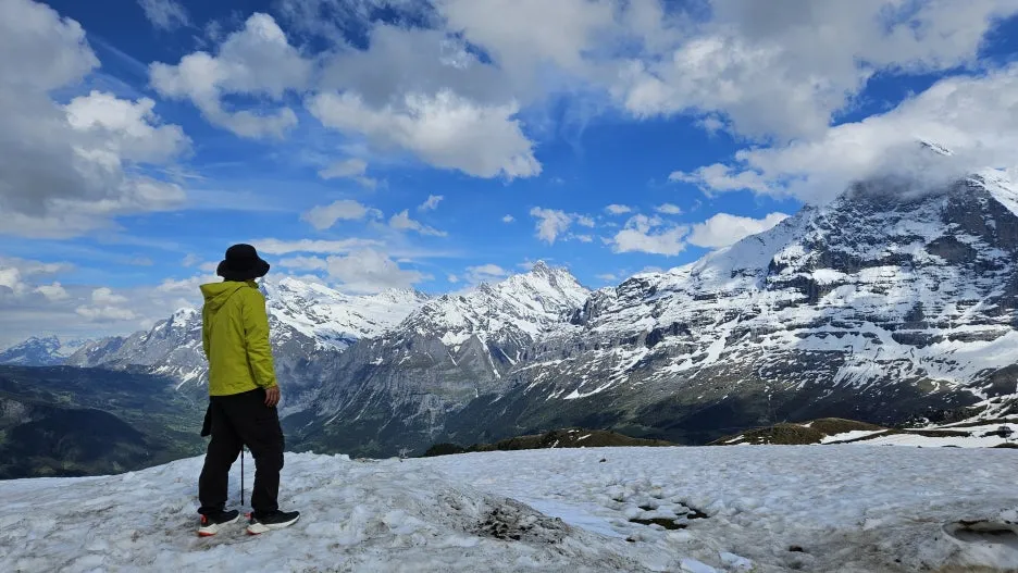 곤돌라는 가파른 경사를 타고 나를 단숨에 맨리헨 꼭대기에 올려놓았다. 트래킹으로 지쳐 있는 데다 곤돌라의 울렁거리고 어지러운 느낌이 싫어서 올라오는 내내 의자에 앉아 가만히 눈을 감고 있어야 했다. 맨리헨은 융프라우산에서 마치 콧대처럼 길고 높게 뻗어 내려와 그린델발트와 벵겐 사이를 가르고 있고 지대가 높아 융프라우 지역의 모든 산줄기를 전망하기에도 좋고 주변을 360도로 모두 내려다볼 수 있는 천혜의 위치였다. 바다로 치면 등대 자리라고나 할까. 마치 오늘의 행보를 복습하기라도 하듯 그린델발트 쪽에서부터 시작해서 슈렉호른, 아이거와 융푸라우 정상을 포함하여 동쪽에서 서쪽 끝까지 멋진 설산들의 행렬을 모두 조망할 수 있었다.
