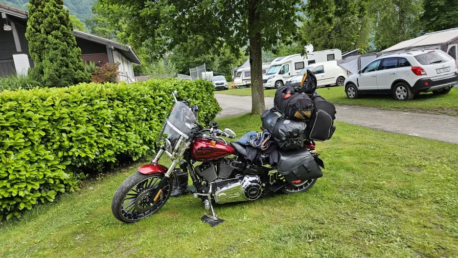 아침에 일어나보니 캠핑장 바로 옆자리에 육중하고 멋진 모터사이클이 주차해 있었고 건장한 금발 청년이 1인용 텐트를 막 걷어서 정리하고 있었다. 지나가던 한 아저씨가 모터사이클을 구경하길래 덩달아 가까이 가서 구경을 해보았다. 모터사이클 주인이 와서 모터사이클에 대해 몇가지 자랑을 하는데 문외한인 나는 잘 이해할 수가 없었다. 하지만 그의 여행 이야기는 흥미로웠다.