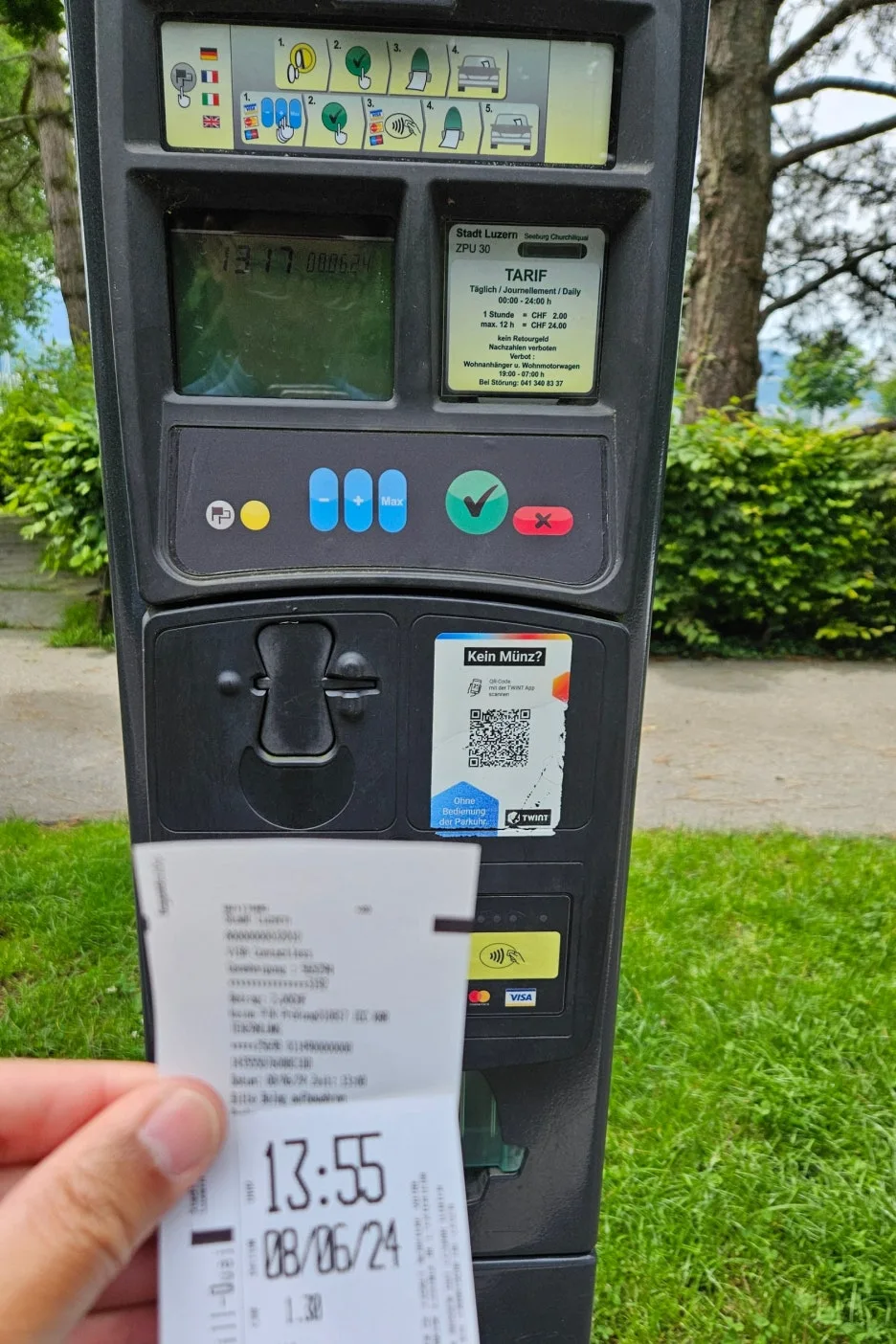 인터라켄을 뒤로한 채 서둘러 루체른으로 향했다. 아름다운 루체른 호숫가에 자리한 '캠핑 리도'에서 묵을 계획이었다. 하지만 캠핑장 체크인 시간이 남아있어 말로만 듣던 '빈사의 사자상'을 먼저 들르기로 했다. 그런데 빈사의 사자상으로 들어가는 마지막 도로에서 빨간 동그라미 표지판이 '떡하니!' 막아섰다. 문화재 차량통제 구역이었다. 근처 주차장을 찾아 헤매는데 마땅한 곳이 없었다. 어쩔 수 없이 길거리 주차 슬롯에 주차하기로 했다.