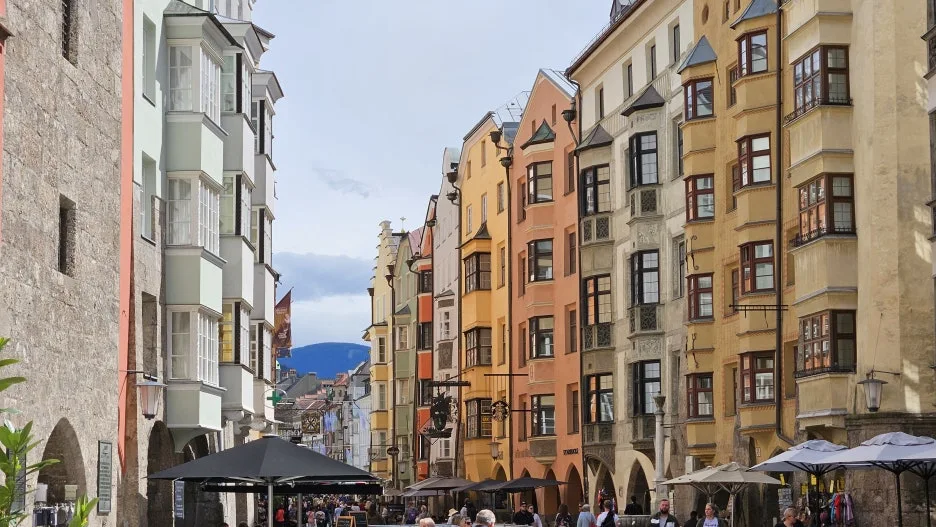 인스브루크를 나에게 각인시킨 사진이 또 하나 있다. 바로 설산을 배경으로 연노랑, 연핑크, 연파랑, 연녹색의 예쁜 파스텔 톤의 집들이 강가를 따라 도열해 있는 사진이다. 직장 생활을 하면서 언젠가는 내가 저곳에 가보리라 마음먹었었기에 이번 유럽 여행에서 인스브루크는 반드시 가봐야 할 곳이었다.