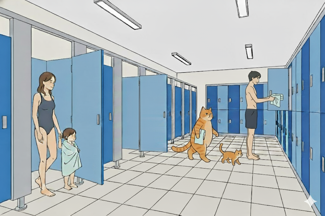 그렇다. 생각해보니 이 또한 말이 된다. 이미 탈의실에서 나온 시점에 수영복을 입고 있으니 샤워실에 대해 남녀 구분할 필요가 없다. 감탄하는 내 눈 앞에, 어린 아들과 함께 샤워하는 여자를 보며 깨달았다. 이곳은 가족 친화적인 수영장 시스템이다. 엄마가 어린 아들과 수영을 하는데 있어, 입장부터 탈의, 샤워, 수영장 입수까지 불편함이 전혀 없는 구조다. 말이 되는 구조다. 스포츠는 가족과 함께할 수 있는 것이 맞지 않는가?
