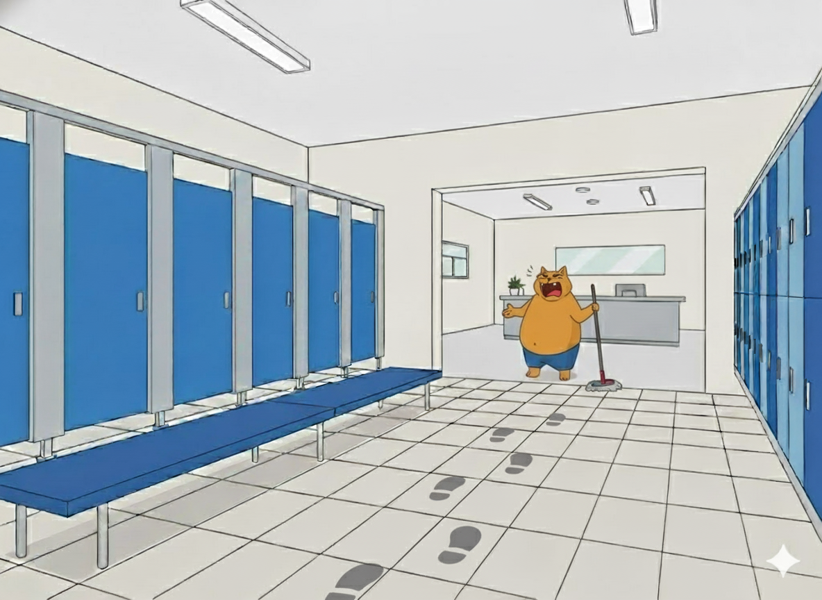 - 여기는 여자 탈의실인가? 어디서 부터 잘못 들어 온 거지? 어떻게 잘못 들어 올 수 있었지?