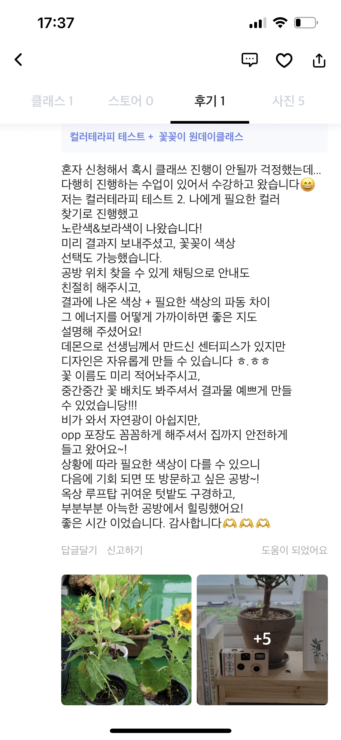 나의 부족함이 너무 크게 보이고, 만족 못하면 어쩌나 걱정만 하며 2달 동안 미뤄뒀다. 개인 맞춤형 플라워 테라피 클래스를 하고 싶었는데, 단가가 안 맞다는 이유로 접어 뒀다가 이번에 오픈한 것이다.