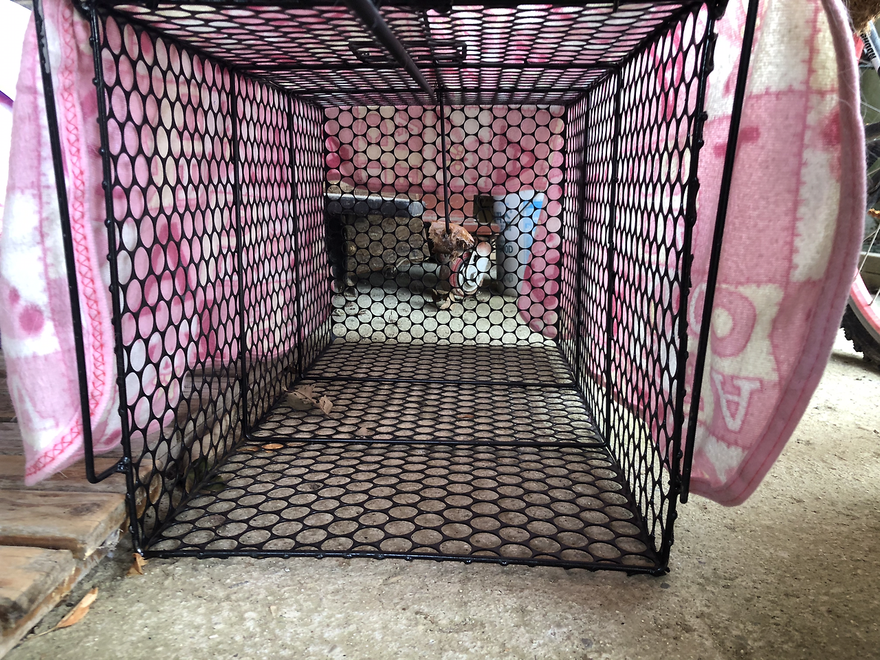 치즈에게 이틀 동안 먹이를 주지 않고 포획틀 안에 통조림, 굴비 대가리를 걸어둔 후, 상황을 지켜보고 있는 중인데, 치즈가 포획틀 근처에 오지를 않는다.