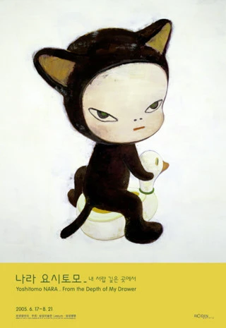 그건 바로, 2021 현재도 여전히 왕성하게 활동하고 있는 ‘요시토모 나라 Yoshitomo Nara’의 작품들이다. 요시토모 나라는 한국 최초 개인전 ‘내 서랍 깊은 곳에서’ 를 로댕갤러리 (지금은 폐관했음) 에서 개최 했었다. 나는 전시 개최 이전에 이미 요시토모 나라의 한국 팬 커뮤니티(싸이월드 커뮤니티 )에도 가입이 되어 있었고, 그 커뮤니티에서 주최한 (전시차 한국에 방문한 )요시토모 나라를 초대한 ‘작가와의 만남’에도 참석했었다. 그때는 생애 최초 팬미팅( 중고등학생 때 가수 덕질도 안 하던 내가 30이 넘은 나이에 ‘화가’ 덕질을 하였다니!!)까지 가고 난리도 아니었다.