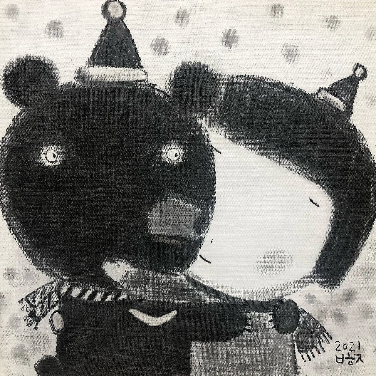 곰돌아! 너를 꼭 안아보는 상상을 했어!#반달곰#사육곰#동물권#생츄어리#크리스마스선물 #곰 #bear #겨울곰 #겨울잠#winterbear #hibernation#자선경매 #그림은힘이세다#ㅂㅎㅈx블랙랏x카라