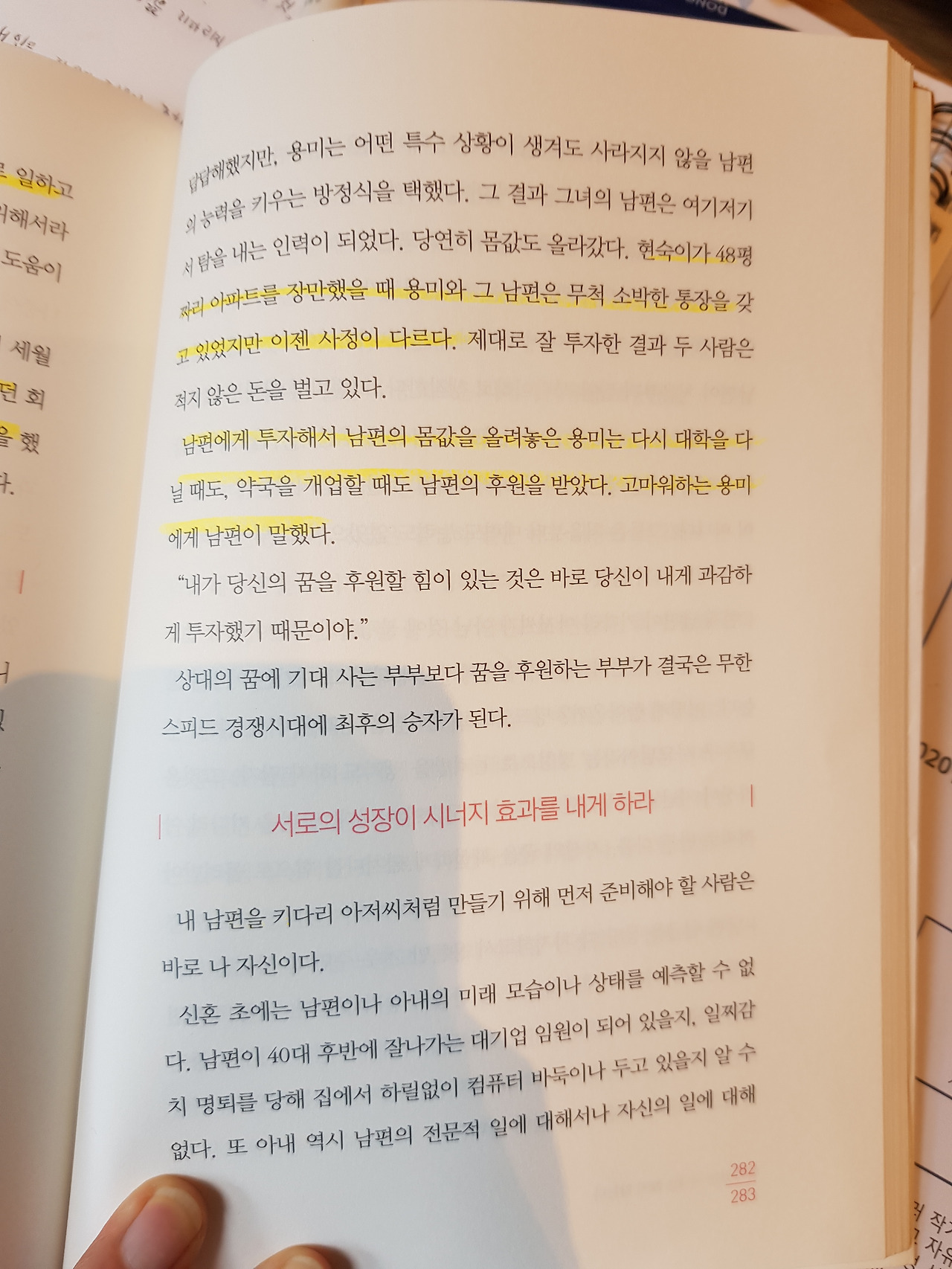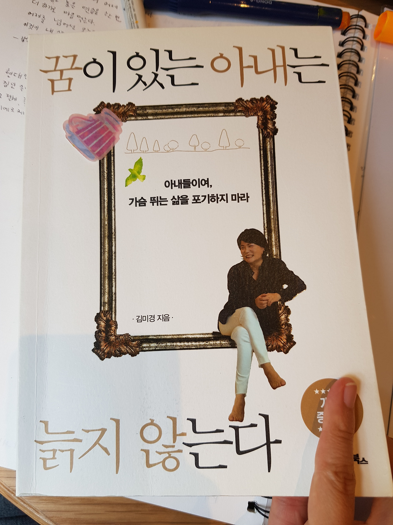 오늘은 존경하는 김미경 강사님의 '꿈이 있는 아내는 늙지 않는다' 읽고 있다. 김미경TV의 거의 모든 영상을 정주행한 후 그녀의 팬이 되었다. 요새는 그녀의 책을 정주행 중이다. 영상과 비슷한 내용들임에도 글로 읽으니 새롭고, 주저앉던 마음에 용기가 생긴다.