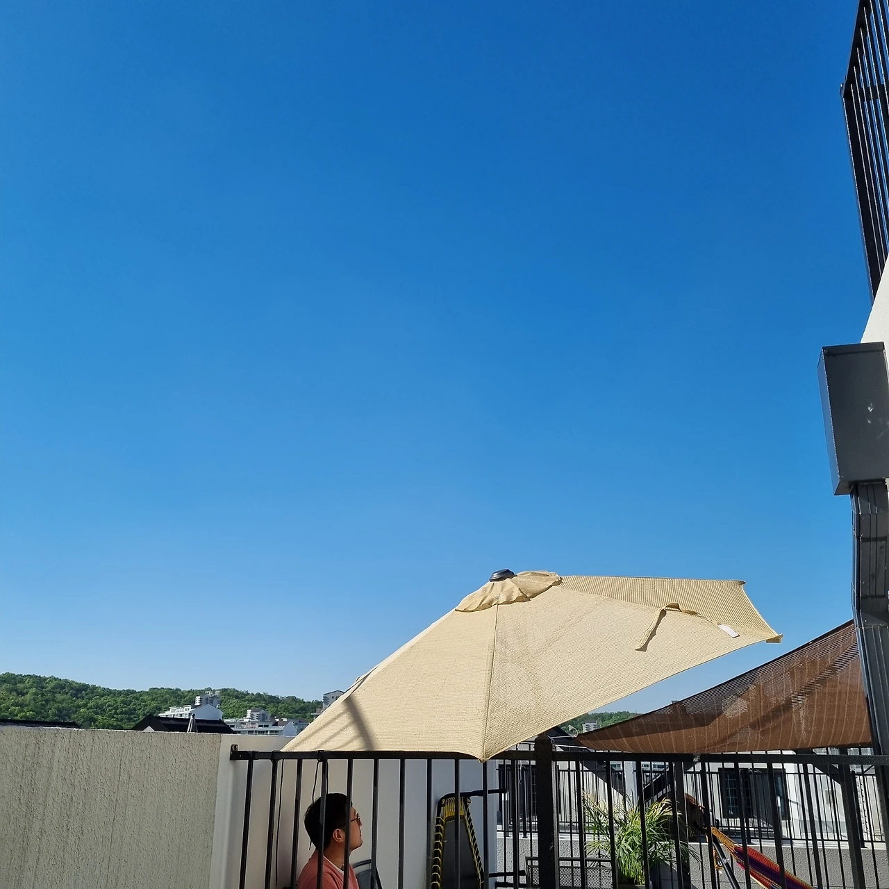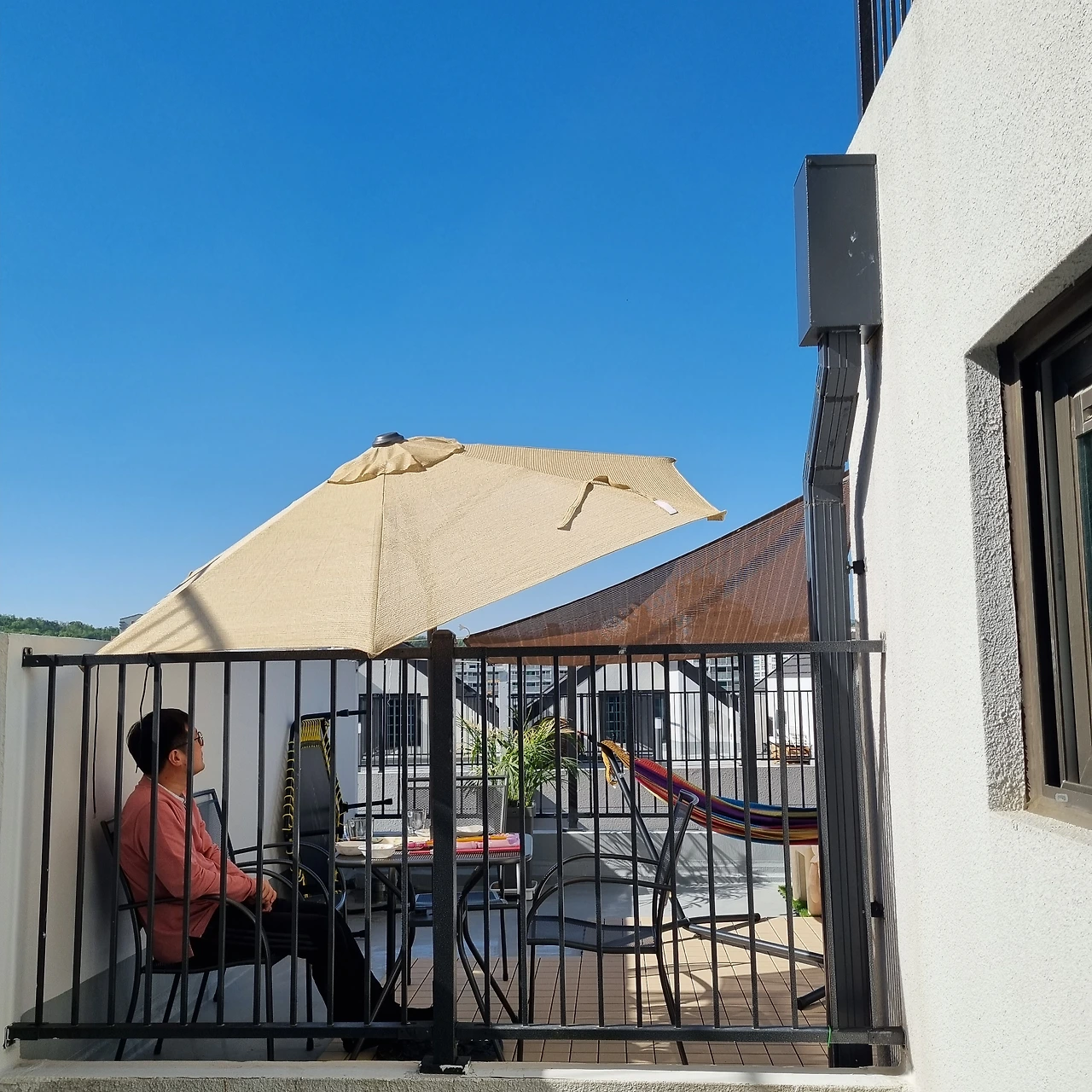 처음 이사왔을 때는 테라스에 거의 안 나가게 되길래,,, '이용 잘 안 하게 되는구나~'라고 생각했었거든요. 그런데 아무 것도 없으니 안 나갔던 거더라고요. 테이블도 있고 의자도 있고 해먹도 있으니깐 너무 잘 나가고 있어요. 테라스에 앉아 있으면 무지 행복해요. 마치 유럽에 와 있는 느낌도 들고요^^