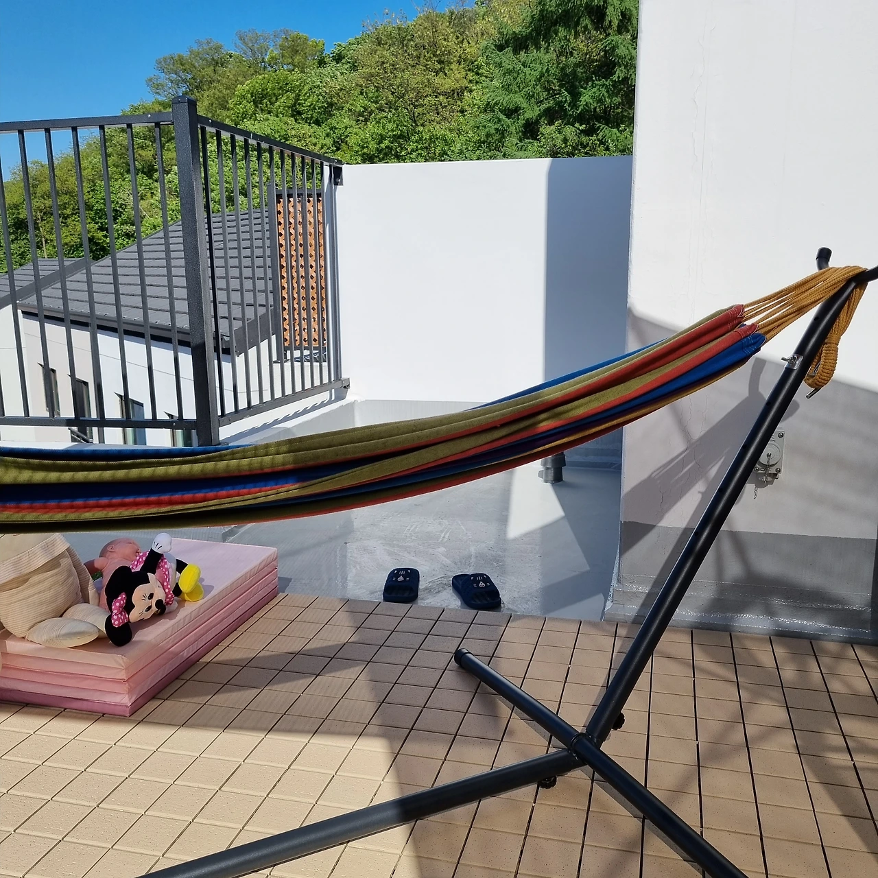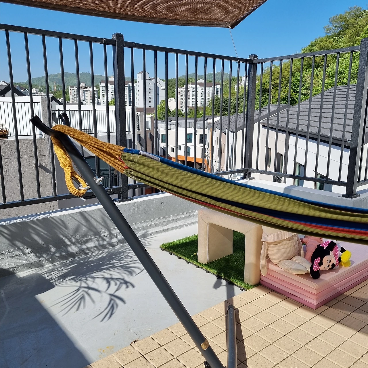 아이들도 테라스 공간을 좋아해요. 이곳에서 소꿉장난도 하고 인형놀이도 해요. 해먹을 타고 놀기도 하고요^^