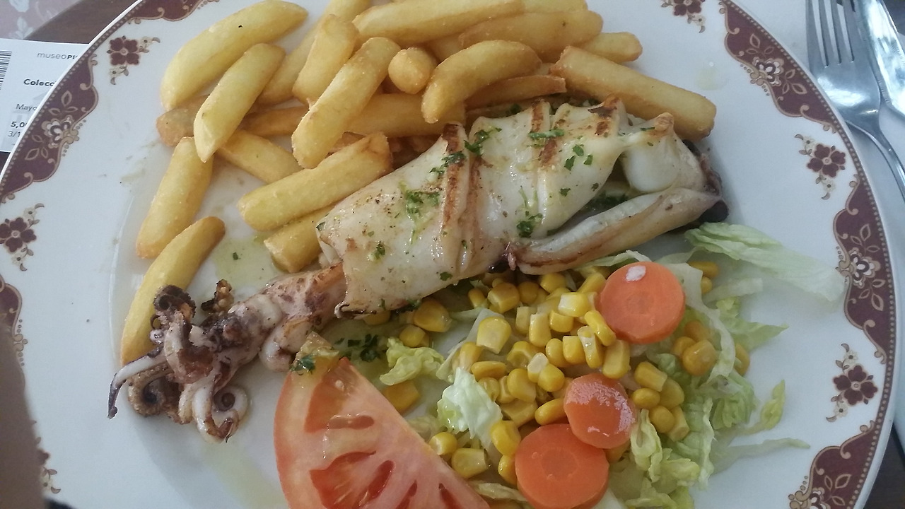 피카소 박물관을 나와서 가장 가까이 있는 음식점으로 들어갔다. 지금 기억을 되짚어 보면 그곳은 음악이 끊임없이 흘러나오고 있어서 굉장히 여유로워 보였다. 우린 그 여유로움에 익숙해지고 싶었다. 여행의 절반 가량을 보내고도 아직도 우린 한국에서의 습관이 묻어 나왔다. 조급하고 초조했다. 바닷가에 왔으니 해산물 한 번은 먹어야지! 하는 마음으로 시킨 칼라마리(오징어) 요리와 소고기 스테이크는 정말 맛있었다. 게다가 빵도 따뜻해서 더더욱 맛있었는데, 여기서는 빵에도 요금이 붙었다. 하지만, 우리가 들어온 후로 미국 할머니 할아버지로 보이는 관광객들이 한 무리 들어왔고, 우린 이에 대해 이유야 당연히 우리가 들어와서라고 자부했다. 그래서 그런지 사장님께서 친히 달달한 브라우니를 서비스로 주셨다! (음식점 이름은 El jardin)