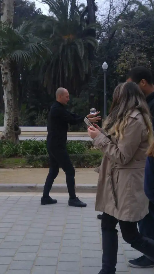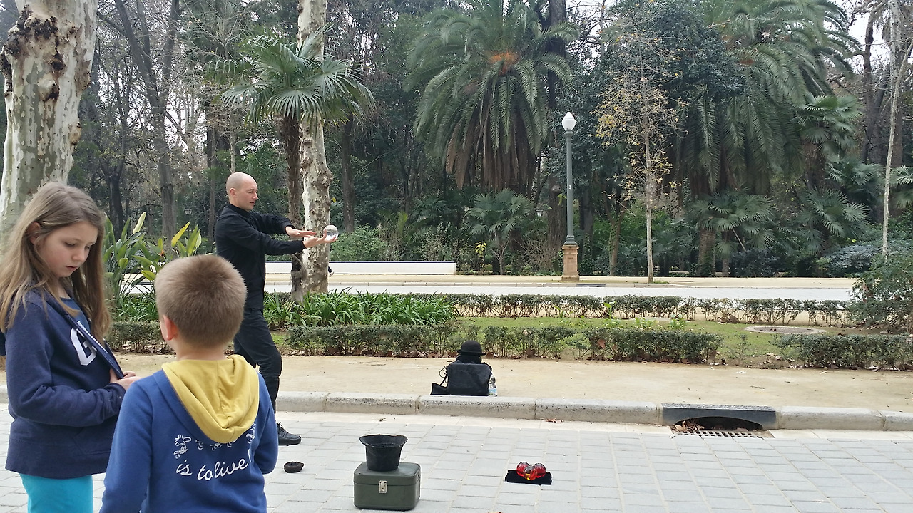 너무 이른 새벽에 도착해서 끼니를 거른 채 돌아다녔던 우리는 상당히 배가 고팠다. 결국 밥도 먹을 겸 숙소에 들려서 충전도 할 겸 다시 도시 중심지로 돌아왔다. 돌아가는 길에 마주친 길거리 아티스트는 물방울 같은 물체를 자유자재로 갖고 노시는 모습이 신기해서 한 컷 찍었다.