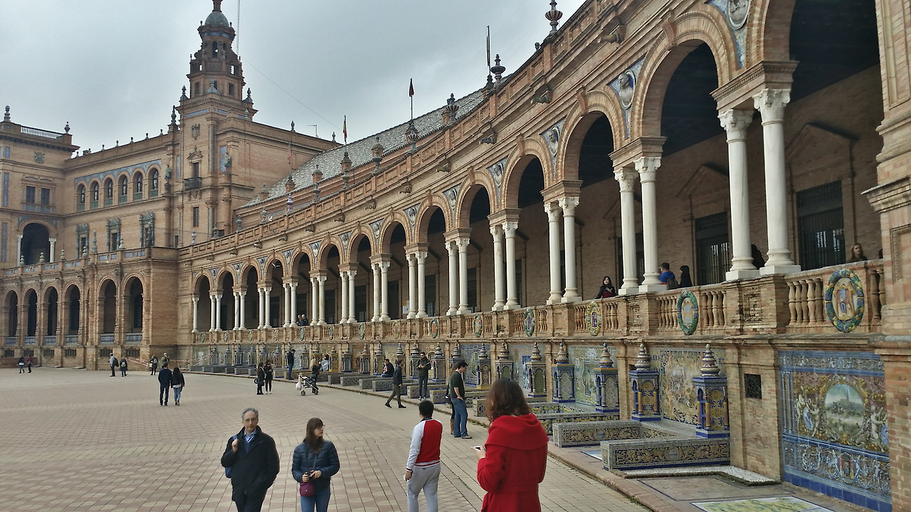 이미 우린 세고비아에서 최상의 컨디션으로 최고치의 여행 기분을 냈기에 아무래도 아래 지방에 위치한 세비야에 대한 기대는 더했다. 그런 기대를 안고 처음 간 곳이 Plaza España 였다. 날씨는 좀 꾸리꾸리 했으나 사이즈에 압도 당해 어떠한 말도 떠오르지 않을 정도로 장엄했다.