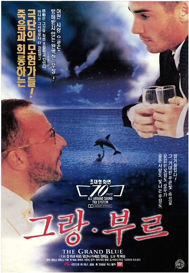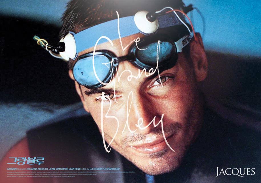 감독은 장 르노의 또 다른 매력을 알아볼 수 있게끔 기회를 제공해준다. '레옹'에서 마틸다만 바라보는 어리숙하지만 잔인한 어른이 아닌 '그랑블루'에서의 엔조로 유쾌하지만 자존심이 강한 어른다운 면을 보여준다. 또한 '자크'로 나오는 장마르크 바의 연기는 언제나 봐도 감동적이다. 어떻게 저렇게 때 묻지 않은 순수함을 잘 연기해내는지 알 수 없다. 그의 눈만 봐도 영혼이 맑아질 것만 같은 느낌을 줄 뿐만 아니라 돌고래와 자유자재로 움직이는 그의 몸놀림은 상당히 '자크'스럽다. 7월 25일 '블루'라는 주제에 맞춰 감독판으로 재개봉한다고 한다.
