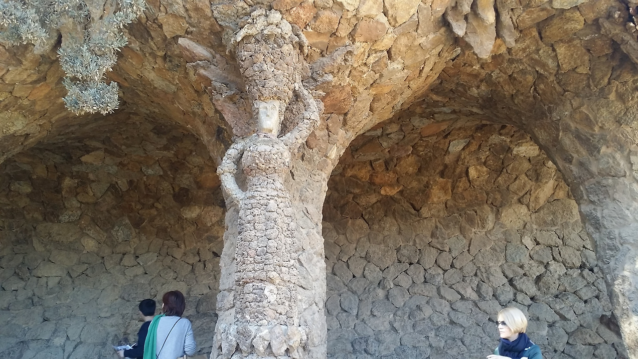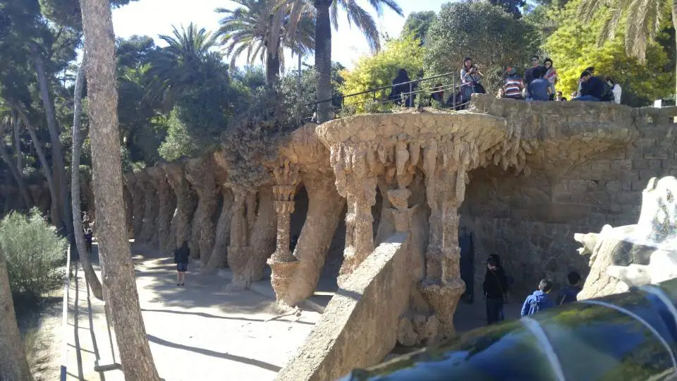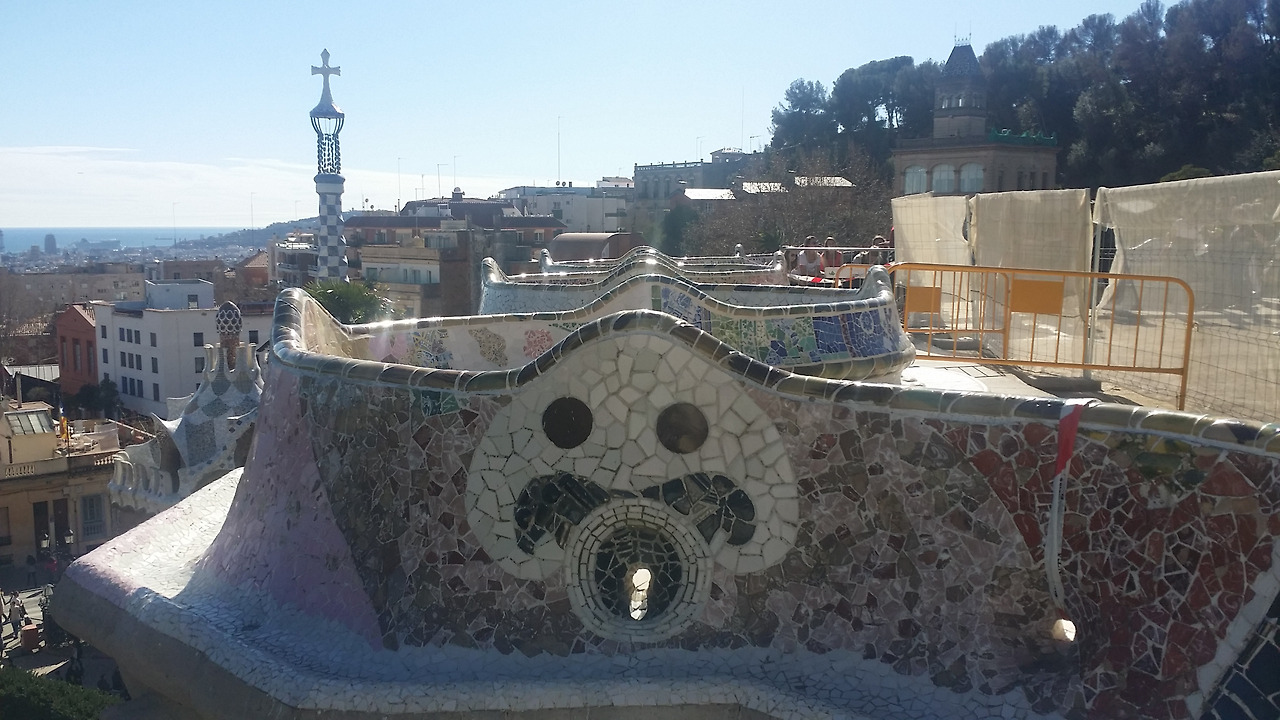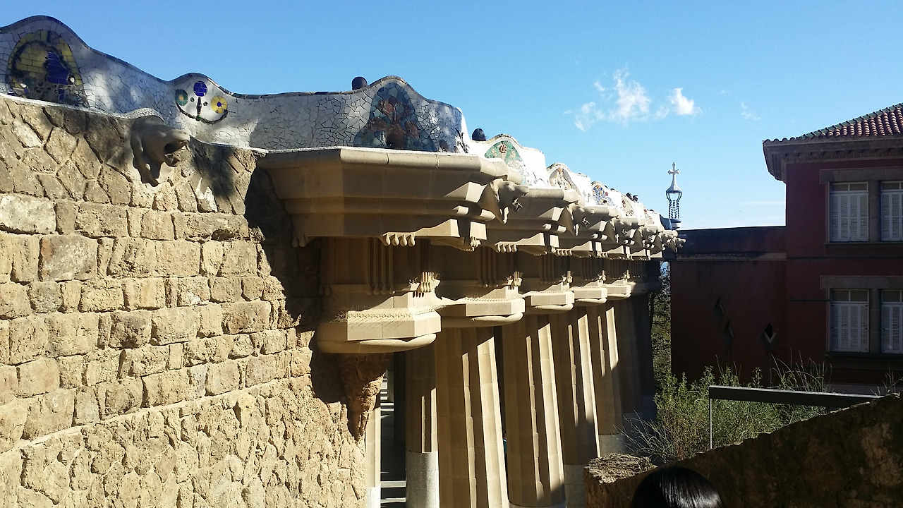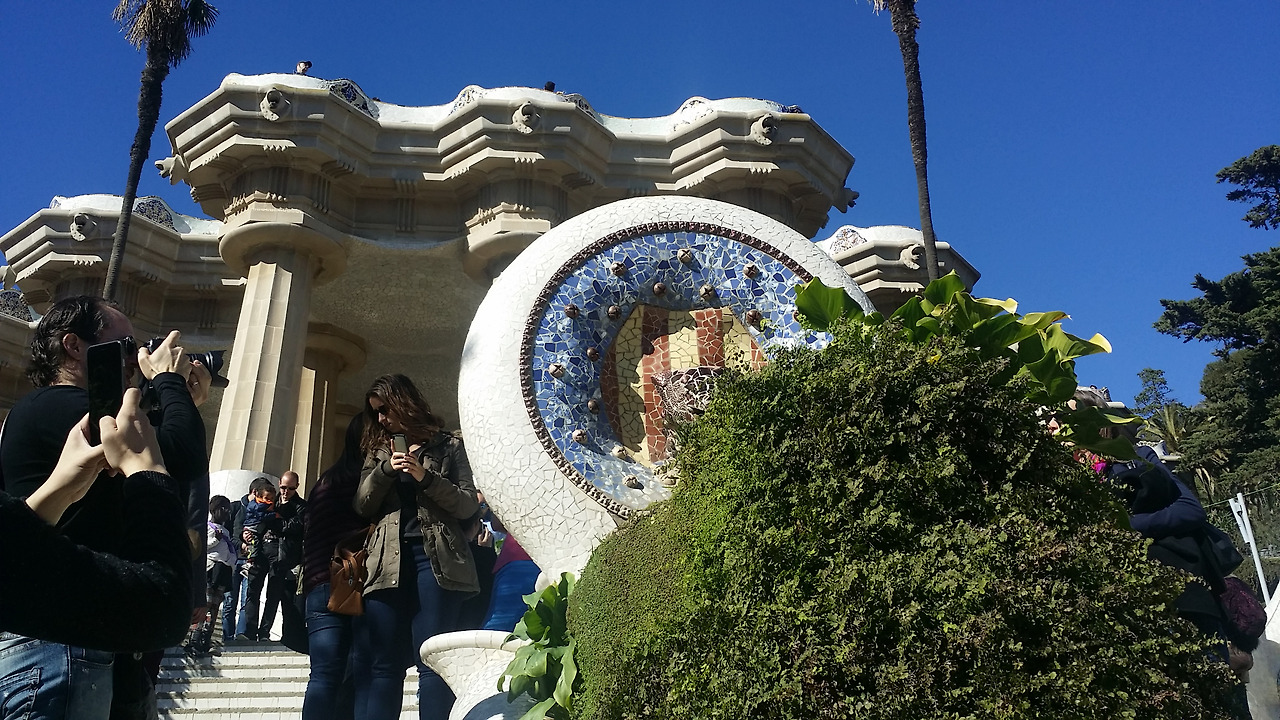 보는 내내 역시 가우디!라는 생각뿐이었다. 앞서 언급했듯이 사그라다 파밀리아도 좋았지만, 개인적으로 이런 타일을 이용한 모자이크 아트가 되게 이색적으로 다가왔다. 도마뱀 위에 있는 용 비스므레 한 아이와 찍고, 다음으로 도마뱀을 찍으려고 하는 도중에 인파는 상당했고, 단독샷이라는 게 불가할 정도였다. 그래서 결국, 나를 포기하고 도마뱀 위주로 사진을 찍었는데 이마저도 힘들었다.