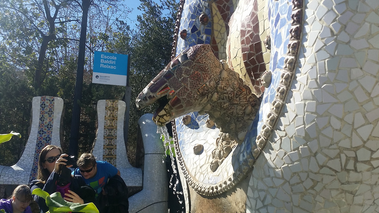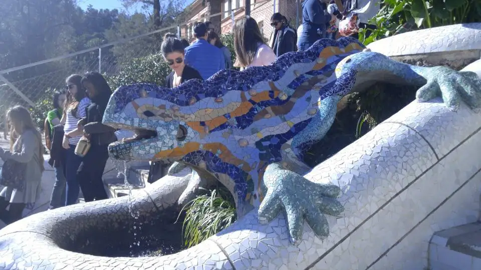 우린 종종걸음으로 바삐 구엘공원으로 걸어갔다. 12시 반에 맞춰서 티켓을 사놓은 상태였기 때문에 약간은 시간이 빠듯했다. 그렇게 우왕좌왕할 겨룰 도 없이 열심히 걸음을 옮겼다. 처음 입구에 들어섰을 때, 들리는 바이올린과 노랫소리는 상당히 감미로웠던 걸로 기억된다. 그렇게 잠시 넋을 놓고 보다가 다시금 정신을 차리고 우리가 그토록 보고 싶어 하던 구엘공원의 꽃이라고도 볼 수 있는 도마뱀을 보러 갔다.