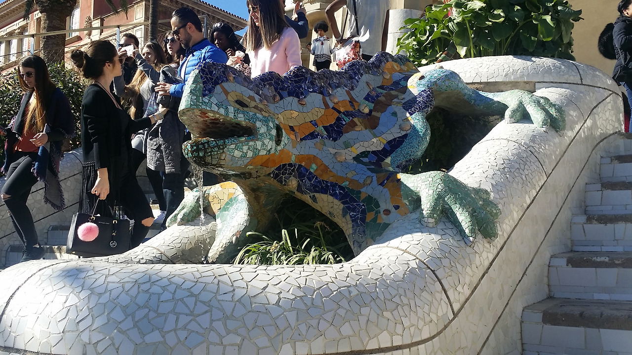우리는 최대한 관광객처럼 보이고 싶지 않았다. 여유롭고 남는 게 시간이라는 것을 과시하고 싶었다. 그래서 곧바로 도마뱀을 보러 가기보다는 천천히 광경 하나하나를 다 눈에 담고자 노력했다. 과학적으로 만들었다는 의자 같지 않은 의자에도 앉아보고, 햇빛을 쬐면서 비타민 D도 합성했다. 그렇게 여유롭게 지내다 보니 드디어 스페인에 온 느낌이었다. 여행을 하면서 그 날 만큼 빠듯한 일정을 소화해낸 적도 없지만, 마음속으로는 이미 스페인과 한 몸이 되어 있었다. 그렇게 앉아 있다 보니 패키지 투어로 오신 한국인 관광객들을 피해 도마뱀을 보러 자리를 옮겼다.
