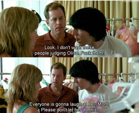 이 영화를 한 번이라도 봤다면 공감 가능한 사실 하나는 시청자 모두가 주인공인 올리브의 행동과 말투에 한 번쯤은 미소를 지어 보았을 것이다. 또래 아이들보다는 조금 더 통통하게 비치지만 그만큼 매력도 통통 튀는 아이. 항상 알이 큰 안경을 쓴 채로 할아버지 뒤를 쫓아다니는 티 없이 맑고 순수한 올리브. 우리가 그녀에게 배울 점은 끈기다. 자신이 좋아하는 일에 모든 걸 매진할 수 있는 용기가 어리기 때문에 가능했다고 생각하면 큰 오산이다. 만일 그녀의 열정이 없었더라면 영화 속 가족이 마주한 한계는 없었을 것이고 이에 따른 가족의 협심도 보지 못했을 것이다.