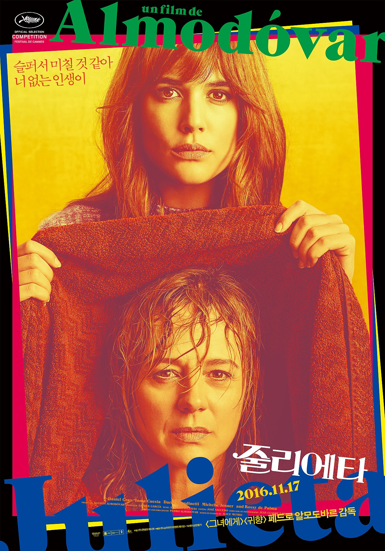 하지만 어쩌면 감독은 우리가 지속하고 있는 관계라는 것이 늘 새롭지만 동시에 오래 지속될수록 그들의 소중함을 잃기 마련임을 상당히 고차원적으로 표현해냈다고 본다. 엄마와 딸이라는 어떻게 보면 상당히 보편적이면서 당연시 여겨왔던 관계를 한 번 조각내면서 그 둘의 관계 회복 과정을 통해 줄리에타의 인생을 엿볼 수 있다는 발상의 전환은 높게 평가하고 싶다. 개봉한 지 오래됐음에도 꿋꿋하게 리뷰를 쓴 이유를 대라고 한다면, 2016년도 최애 작품이기 때문이다. 비록 '라라랜드'도 좋았으나, 우리가 흔히 찾아볼 수 없었던 여자라는 주제를 새롭게 재해석하고 단순히 영화가 다룰 수 있는 꿈, 희망, 그리고 사랑이 전부가 아니라는 점에서 높게 평가해주고 싶다.
