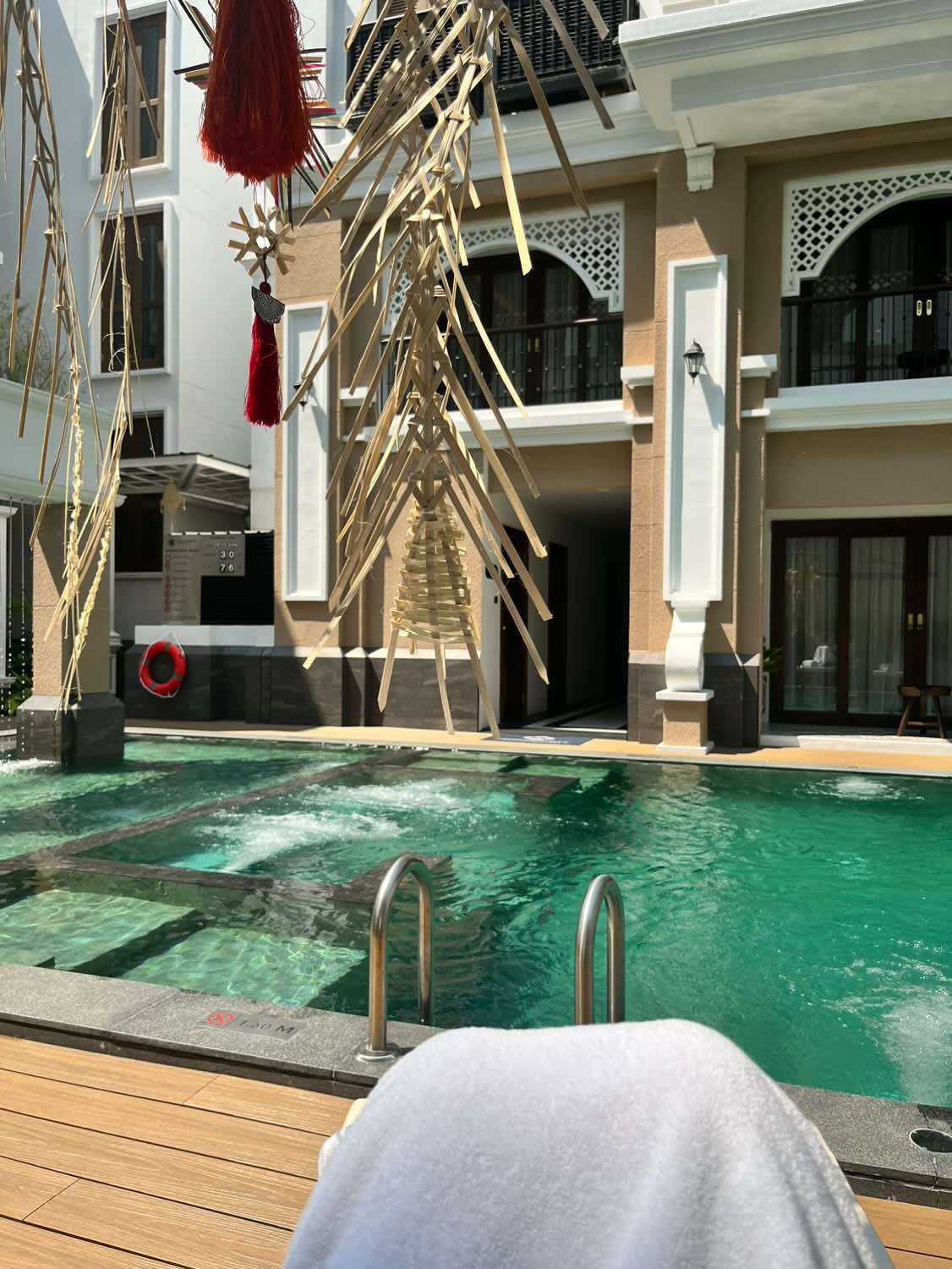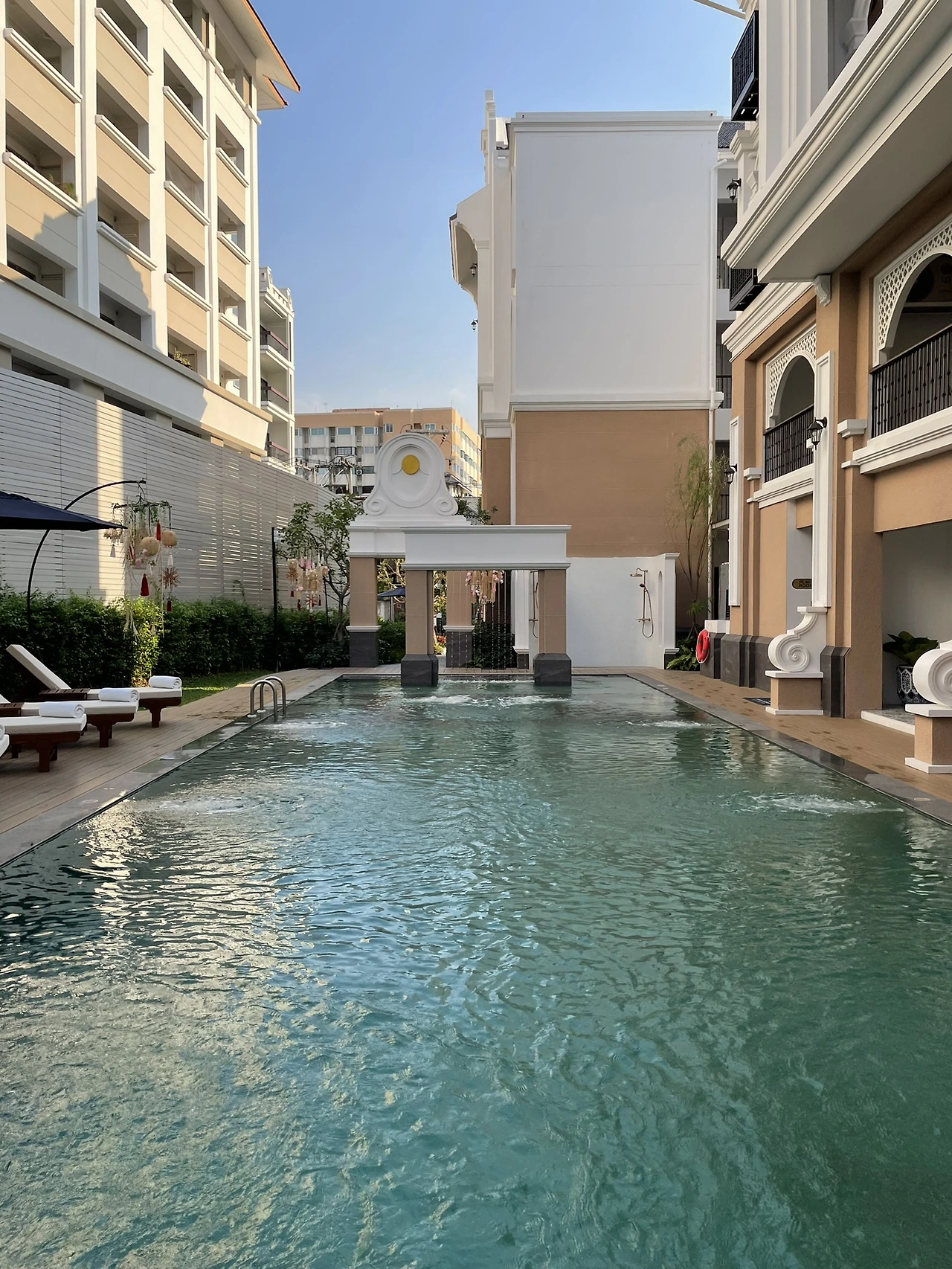 시티뷰로 방 배정이 되었는데 생각보다 나쁘지 않았다. 아쉬웠던 점은, 일요일마다 열리는 야시장이 바로 베란다 앞에서 구경 가능할 정도로 다 보여서 일요일 저녁 11시까지는 살짝 시끄러운 점 (최대한 주말은 피해서 잡으세요.) 또한, 수영장 사진으로 유명한 호텔이다 보니 많은 투숙객들이 해당 공간에서 사진을 정말 많이 찍는다. (특히 한국인들의 주요 명소 같은 느낌) 한국에서도 못 본 동포를 여기서 제일 많이 마주친 것 같기도 하다.
