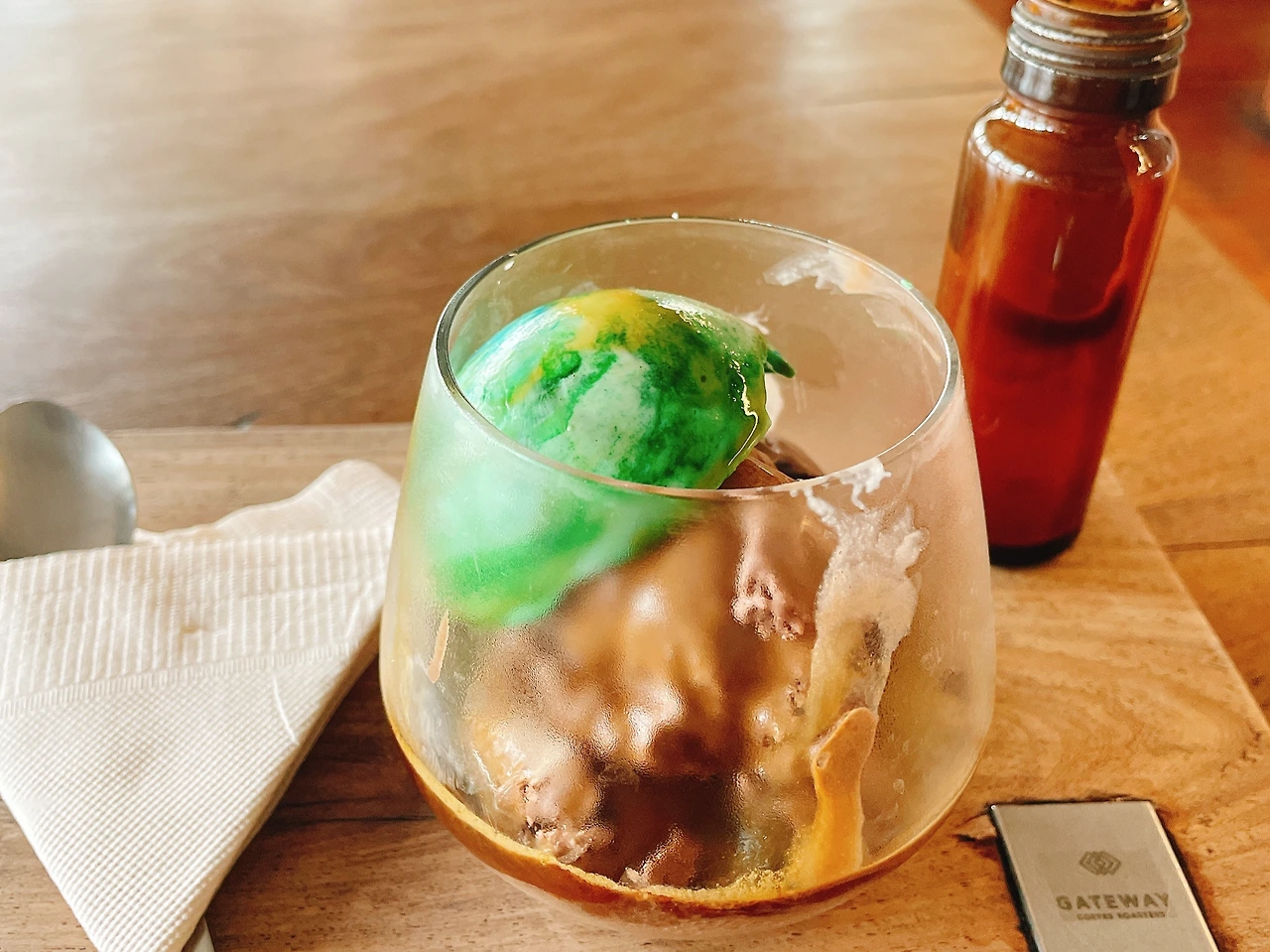 솔직히 조식과 함께 나온 아이스 아메리카노를 이미 한 잔 마시고 난 후여서 조금은 색다른 메뉴였던 민트초코 아포가토를 시켰는데 에스프레소를 저 조그만 유리병에 담아 주는 게 신선했고, 무엇보다 은근히 맛이 어우러져 좋았다.