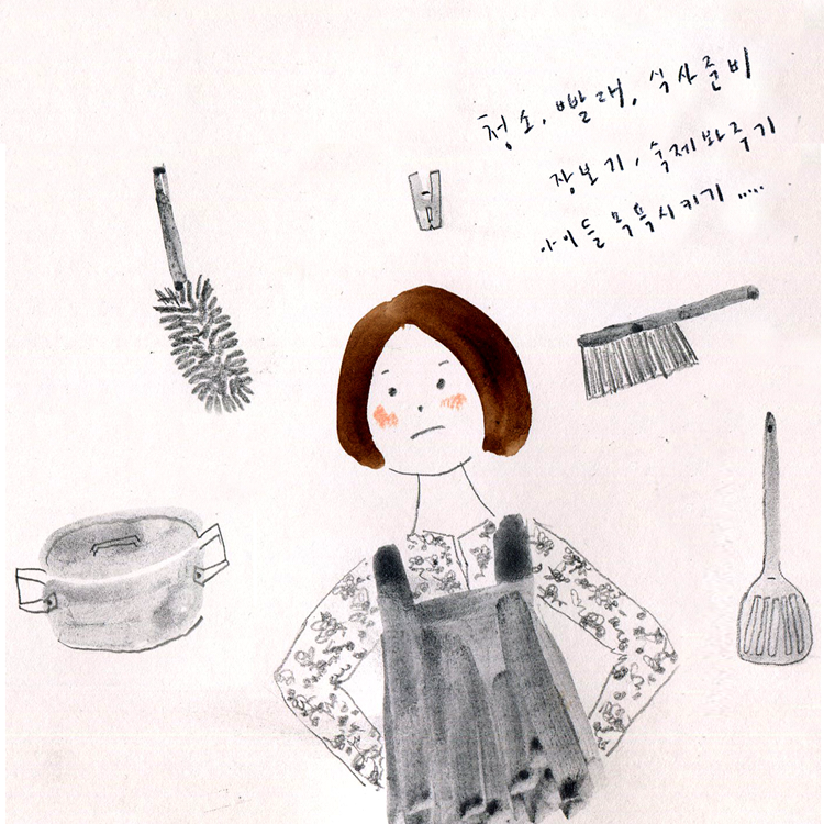 하루 평균 14시간 근무청소 빨래 장보기 아이들 돌보기 등다양한 업무를 동시 처리그만두고 싶어도 그만둘 수 없는 일(욱하는 마음을 다스리며)어떻게 살아야 조금 더 즐거울 수 있을까