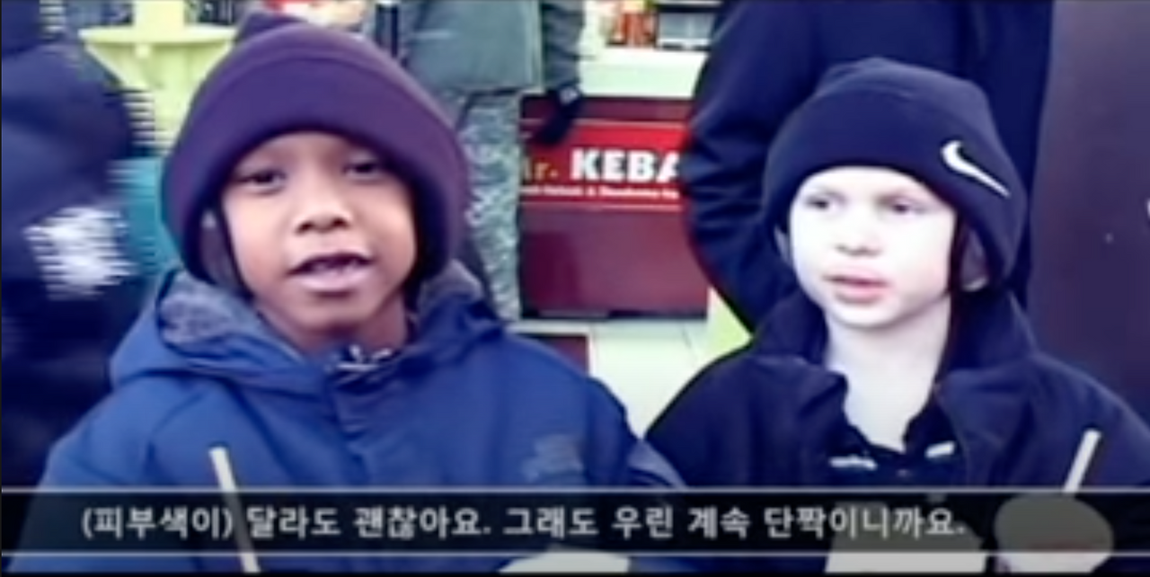 이후는 다시 외국인들의 인터뷰로 마무리된다. 다른 문화권의 사람들은 왼손잡이와 오른손잡이, 키가 크고 작은 것의, 피부색은 '다르다'는 당연함을 친절히 설명해준다.