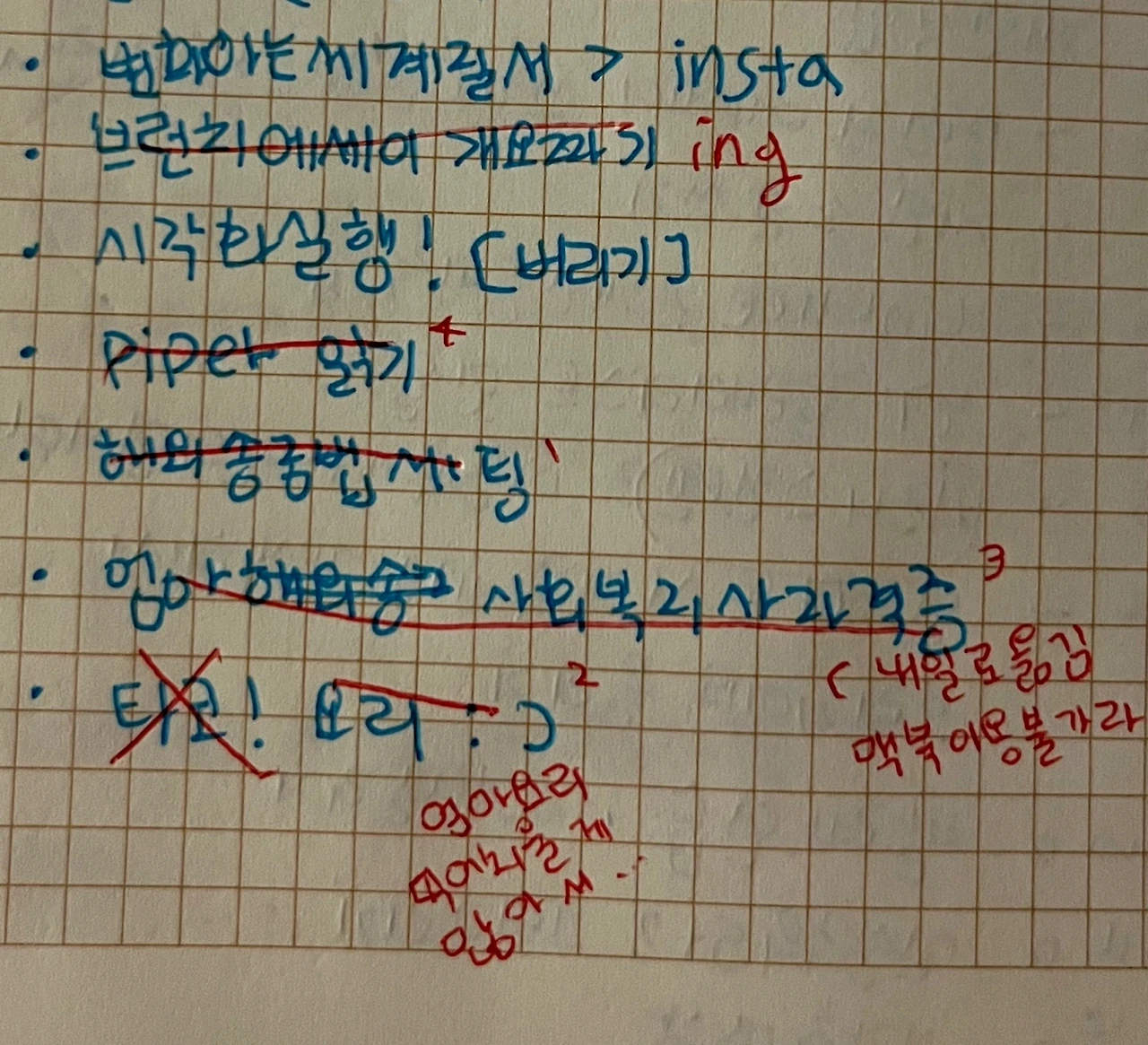 내가 해야 할 일들은 노션에, 에버노트에, 아이폰 메모장에, 달력에, 하물며 하얀 종이 수첩에 이리저리 굴러다녔지만 일정을 단순히 나열하는 건 더 이상 중요하지 않았다.