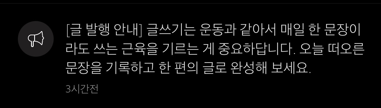 행복한 알림을 받았다. 공과금이나 휴대폰 요금 납부, 보험료 출금 등 통장 잔고 줄어드는 알림이 아닌 글쓰기 재촉 알림.