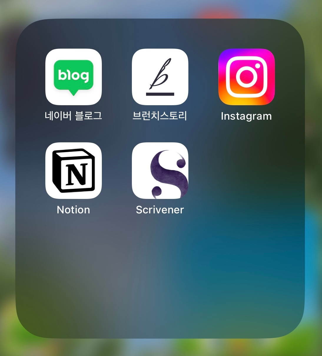 글쓰기나 사진 촬영을 하여 업로드하는 SNS들과 같이 묶어놓았다. 노션은 필기용.