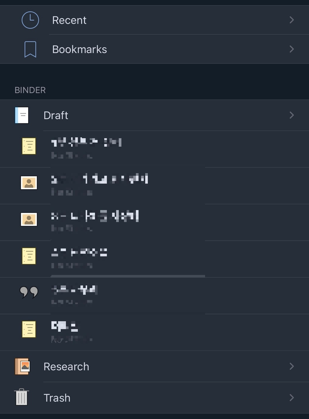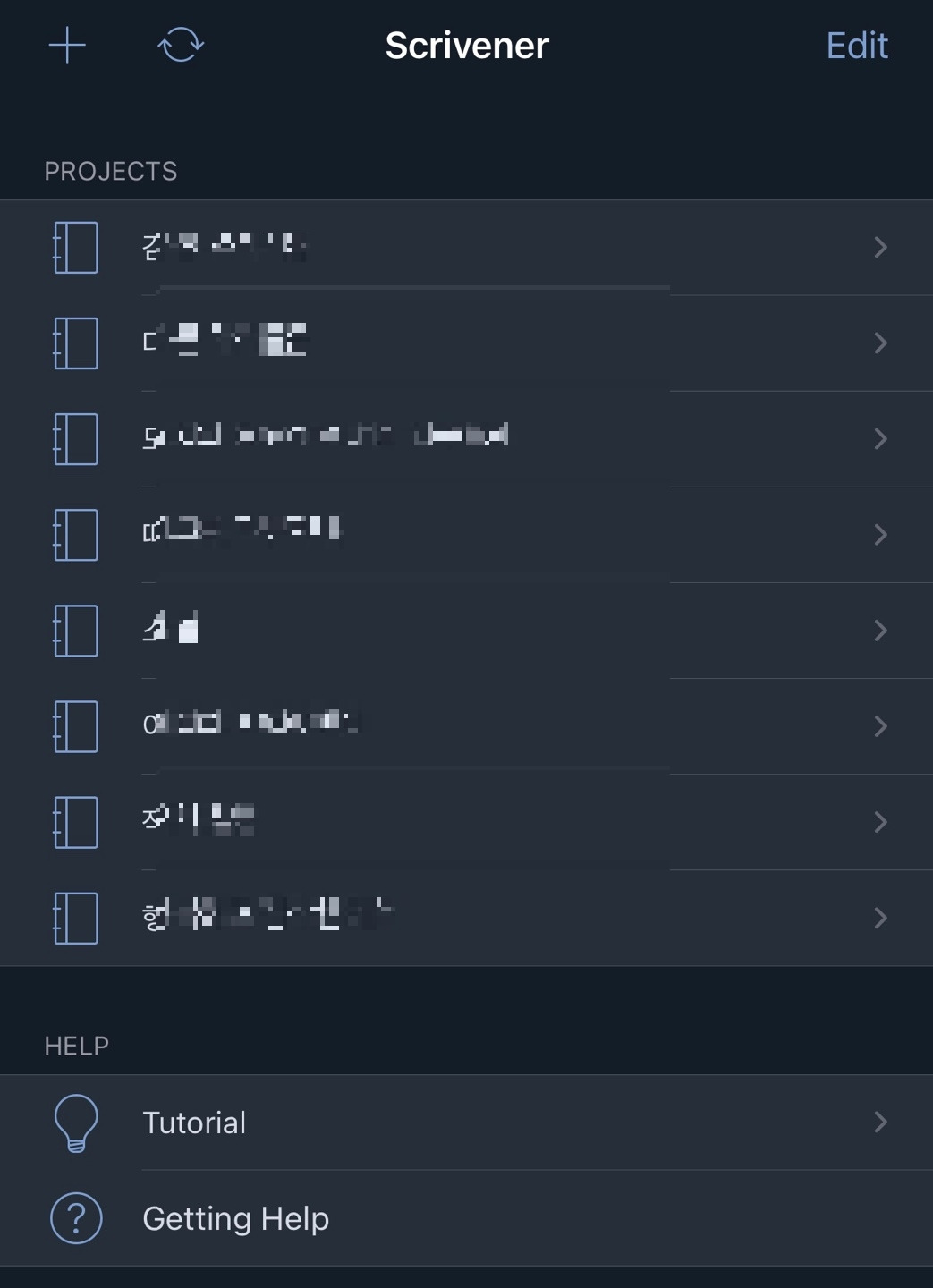 스크리브너 앱에서 여러 개의 프로젝트를 만들 수 있다.