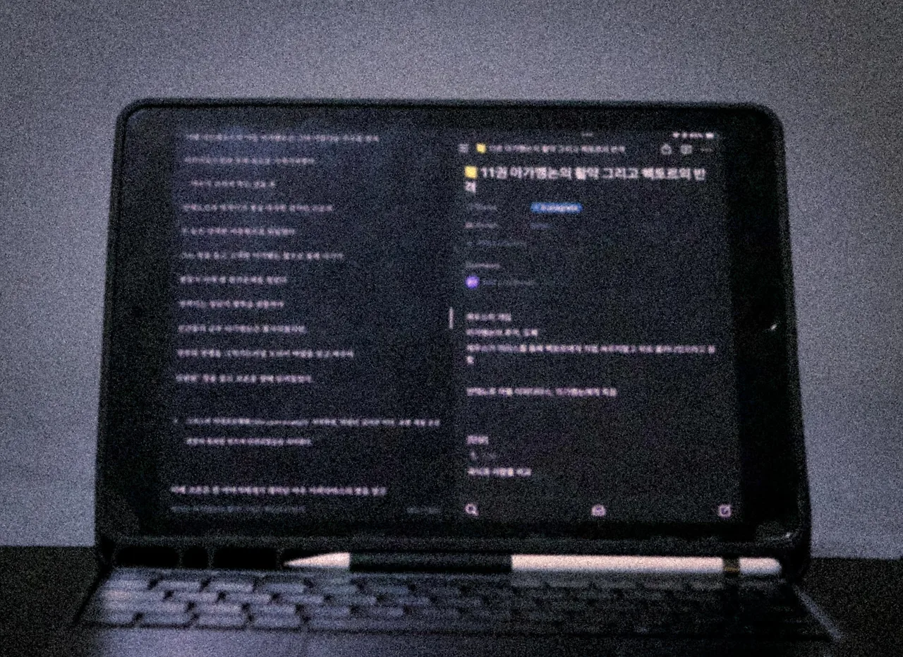 잘 읽지 못하면 잘 쓸 수 없다. 좋은 글을 쓰기 위해 좋은 글을 읽는다. 혼자서는 읽기 힘든 고전, 사람들과 함께 읽으니 그 많은 분량도 조금씩 소화가 된다. 태블릿 화면 왼쪽에는 전자책, 오른쪽에는 노션을 켜놓고 정리해가며 읽으면 기억에 더 잘 남는다.