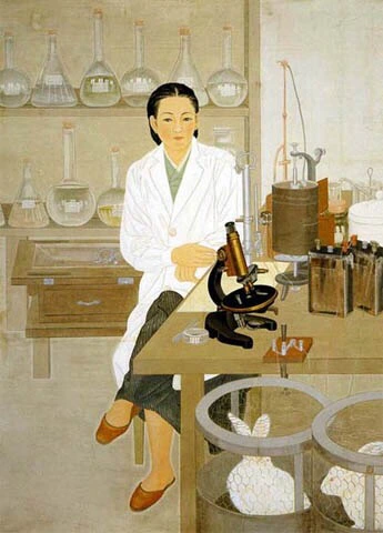 이것도 직업병이라면 직업병일까. 실험실에서 연구하는 근대 여성을 그린 그림.