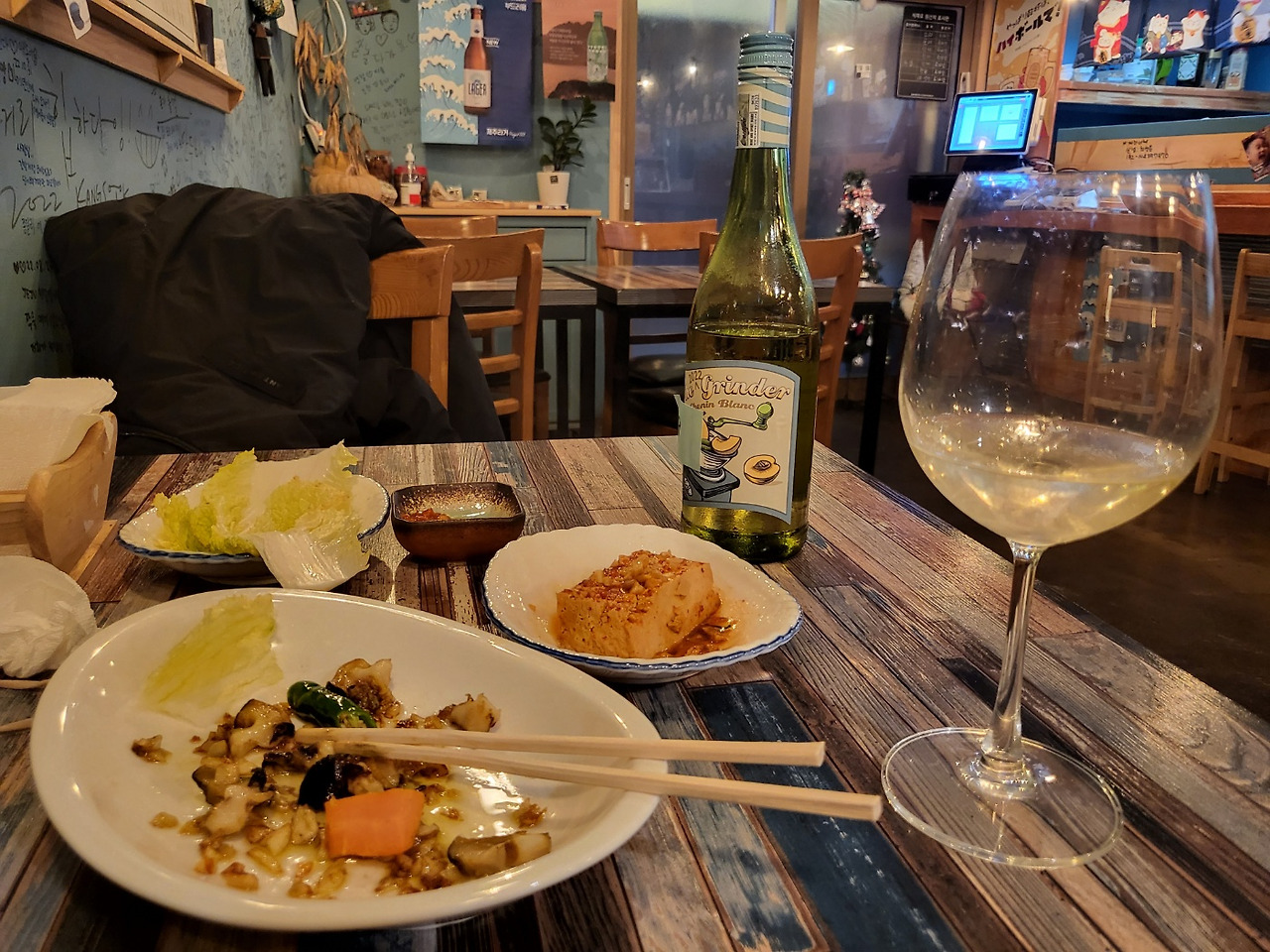 게하에서의 둘째날 밤에는 하프가 아닌 온전한 와인 한 병을 사다가 동네 포차에 갔다. '비처럼 음악처럼'이 우퍼 빵빵한 스피커로 흘러나오는 곳이었다. 주인장 아저씨가 연신 두부 조림, 알배추 등의 서비스 안주를 내줘서 혼자서 도합 4~5개의 안주를 품고 와인 한 병을 빠르게 비워내려갔다. 배가 빵빵해졌고 게하에 와서는 곧장 잠이 들었다.