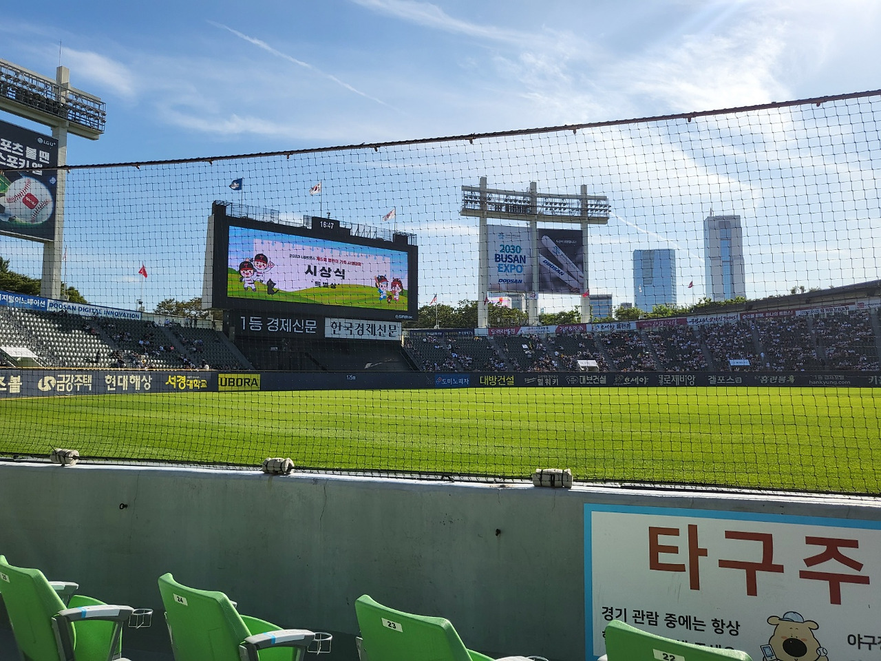 3루 파울라인에 바투 붙어 있는 익스트림존에 들어가기 위해서는, 따로 헬멧을 받아가야했다. '파울 볼에 맞아 무슨 일이 생기더라도 구단에 책임을 묻지 않는다'는데 서약도 해야했다. 경기장에 들어서며 이렇게까지 비장해진 건 처음인데. 그러나 막상 주말 한낮을 맞아 더욱 푸르른 야구장의 잔디와 하늘을 보니 공포는 싹 가시고 마음 한 켠이 부풀어올랐다. 올해만 네 번째 보는 야구장 시야에 내가 새삼스레 놀라고 있을 무렵, Y는 나보다 더한 감동인 듯 했다. "어렸을 때 이모랑 이모부 따라 사직 갔던 기억 나는데… 그 때도 이렇게 시야가 넓고 시원했었나?" 정수리로 내리쬐는 햇볕을 도통 피할 수 없는 익존이었음에도 불구하고, 우리는 받아온 헬멧을 이리 쓰고 저리 써가며 인증샷을 남겼다. 나는 '이용찬'이 마킹된 NC의 충무공 유니폼과 '손아섭'이 마킹된 원정 유니폼을 들고 왔는데, 손아섭 유니폼은 Y에게 하루 대여해주었다.